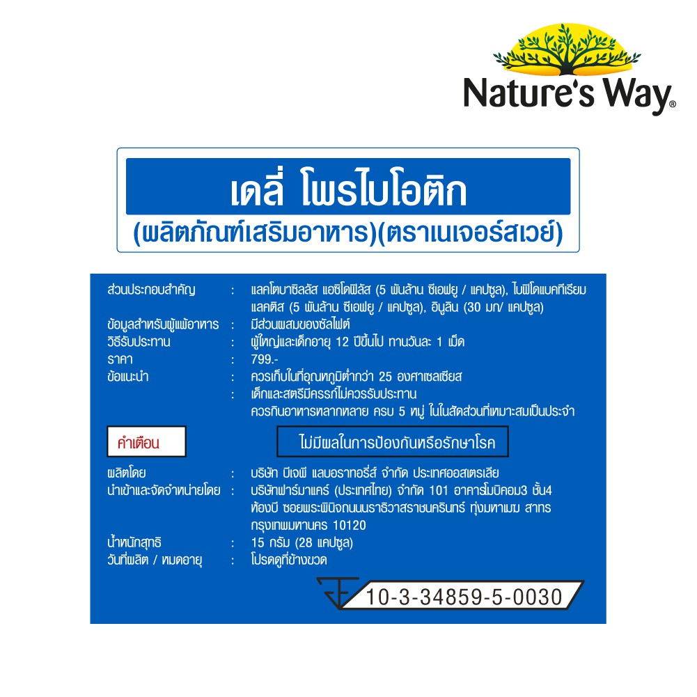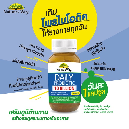 นอกจากนี้ Nature's Way Probiotics 10 million ยังมีส่วนผสมของจุลินทรีย์ที่เป็นแบบพรีไบโอติกส์อีกด้วย