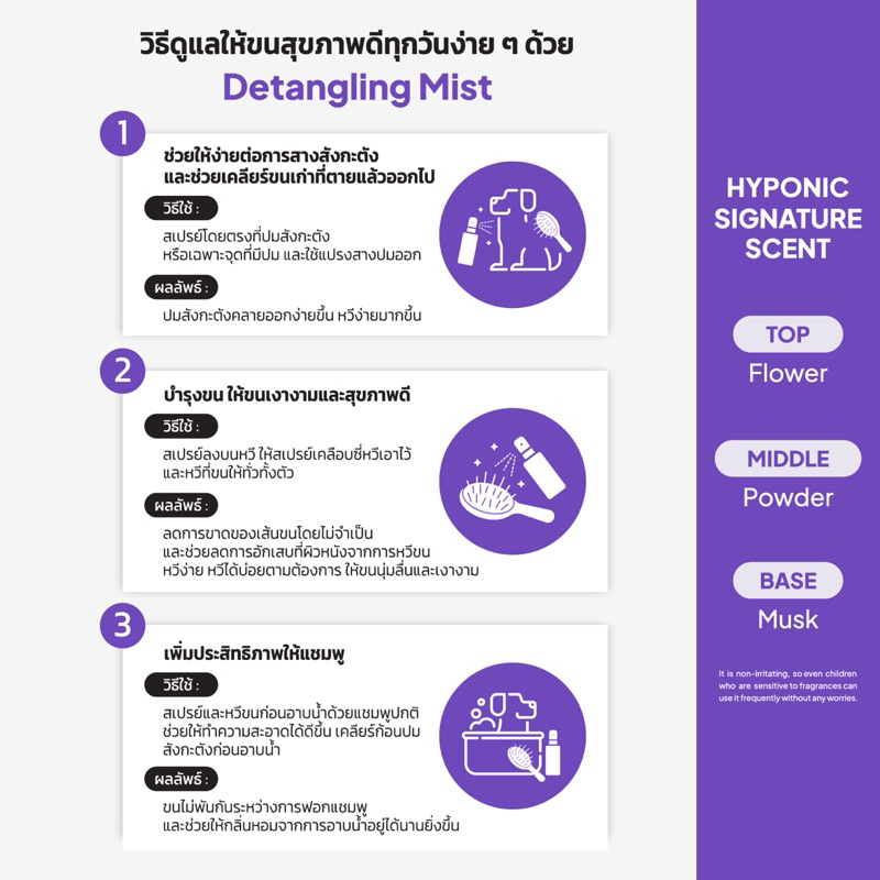 สเปรย์ที่มีประสิทธิภาพในการปลอบประโลมและบำรุงผิวของน้องหมาน้องแมวขั้นสูงสุด นอกจากนี้ยังเพิ่มความชุ่มชื้นให้ผิวหนังและขน เสริมความแข็งแรงของรากฐานเส้นขนให้ขนหลุดร่วงน้อยลงและแข็งแรงมากขึ้น ป้องกันขนพันกันเมื่อฉีดเป็นประจำ และฉีดช่วยสางสังกะตังได้อย่างดีเยี่ยม ลดไฟฟ้าสถิต ไม่เพิ่มน้ำหนักให้เส้นขนแม้แต่น้อย **สามารถฉีดได้บ่อยตามต้องการ**