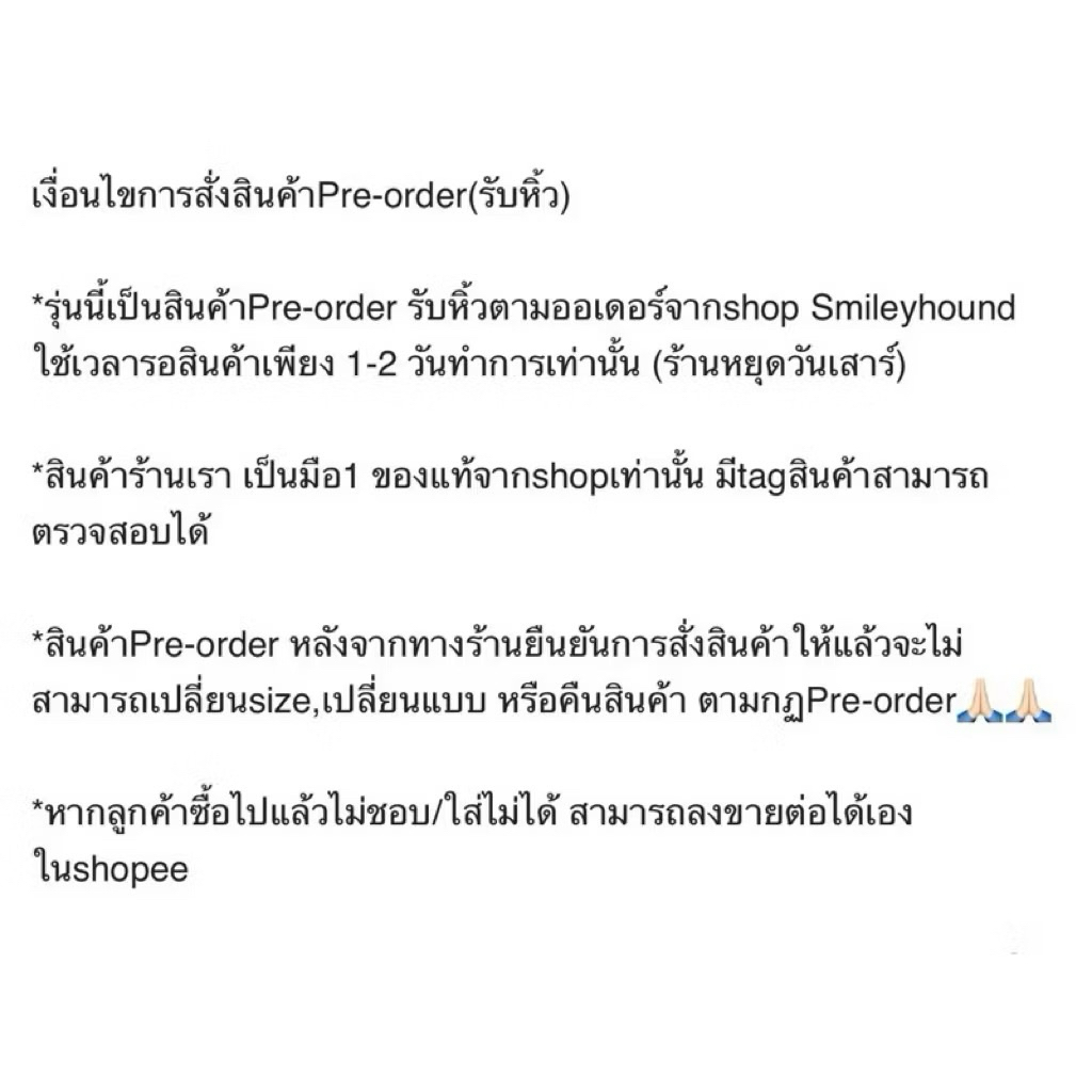 *สินค้าPre-order หลังจากทางร้านยืนยันการสั่งสินค้าให้แล้วจะไม่สามารถเปลี่ยนsize,เปลี่ยนแบบ หรือคืนสินค้า ตามกฏPre-order🙏🏻🙏🏻
