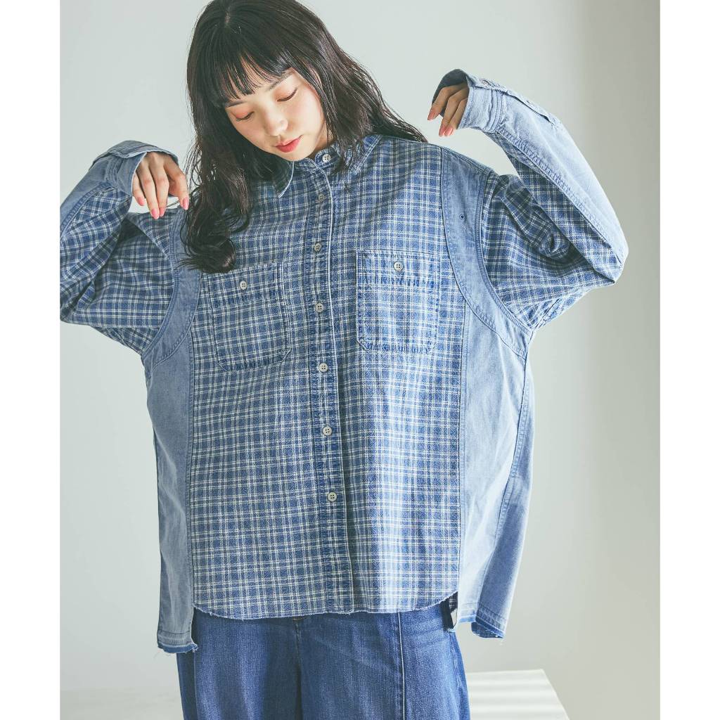 Home Shirts & Blouses nikio and ... [NKJ 2026SS] Work Denim Check Shirt