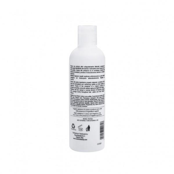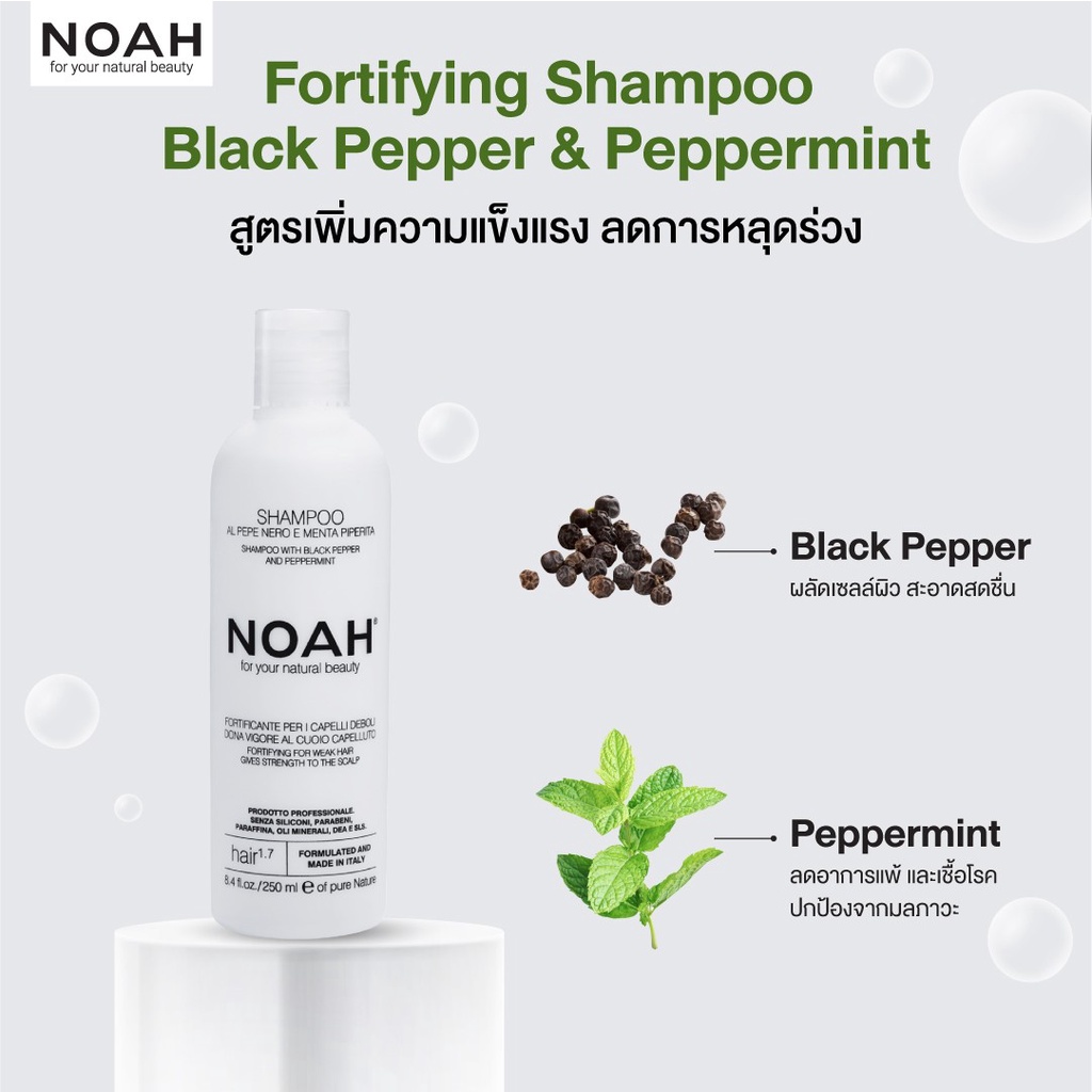 แชมพูสูตรปรับสมดุล เพิ่มความแข็งแรงให้กับเส้นผมและหนังศีรษะ ลดโอกาสหลุดร่วงของเส้นผม ผสมผสานสารสกัดจากธรรมชาติจาก Black pepper , Peppermint ที่อุดมไปด้วยสารต้านอนุมูลอิสระช่วยปกป้องเส้นผมและหนังศีรษะจากการถูกทำลายจากมลภาวะภายนอก