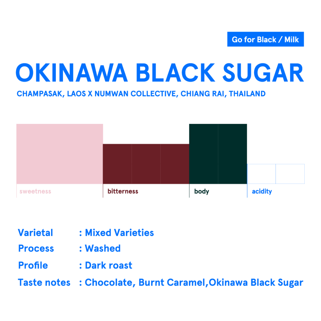 Experience the rich and complex flavors of our Okinawa Black Sugar coffee. Sourced from the finest regions in Laos and Peru, this blend offers a unique combination of sweet chocolate and burnt caramel notes, with a distinct Okinawa Black Sugar finish. Perfect for those who appreciate a deep, full-bodied coffee with a dark roast profile. Ideal for both casual coffee lovers and connoisseurs.
