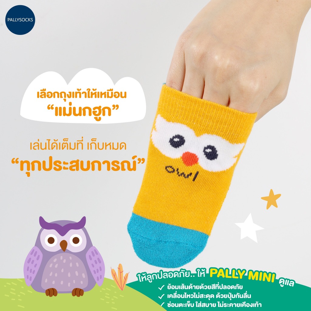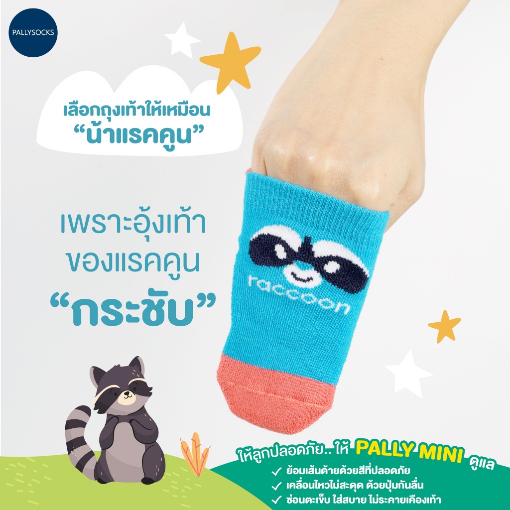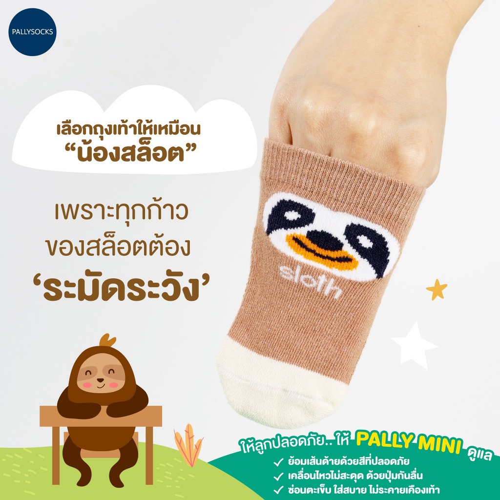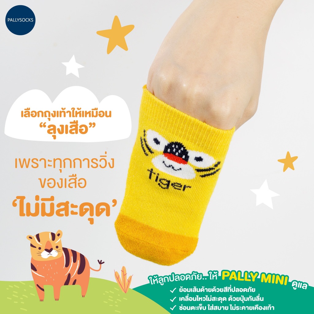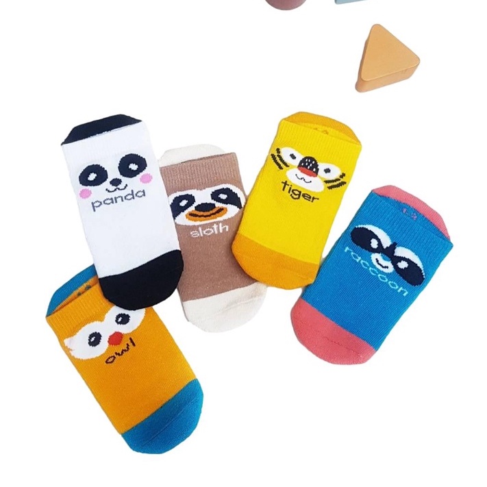 Pally ถุงเท้ากันลื่นเด็กเล็กไร้ตะเข็บ Animal Collection 5 คู่ สำหรับ ไซส์ 6 เดือนขึ้นไปมีกันลื่น