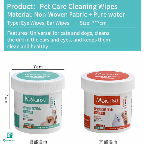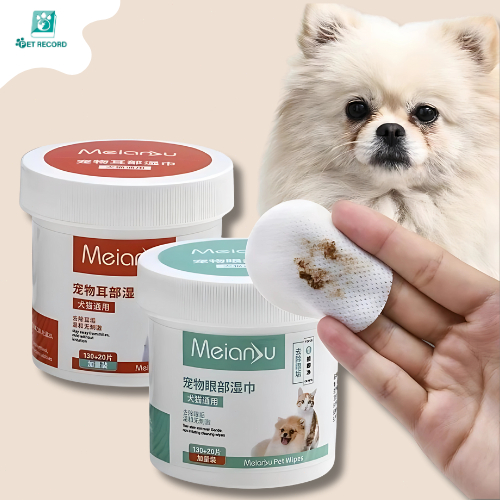 Pet Record แผ่นเช็ดสุนัขและแมว ที่เช็ดตาแมว ตา หู แบบอ่อนโยน สำหรับแมวและสุนัข ทิชชู่เปียกเช็ดคราบน้ำตา บรรจุ 130แผ่น