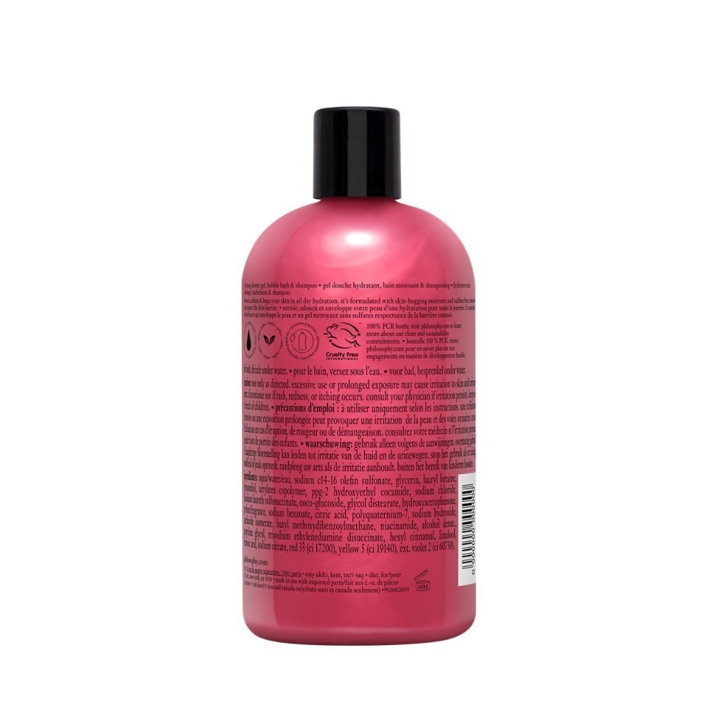 transport yourself to a moment of self-care with the ultra-creamy, iconic philosophy shower gel, upgraded with a skin-hugging moisture complex for intense hydration that won’t be rinsed off yet doesn’t leave the feel of a film or residue. the moisture-barrier-respecting formula efficiently cleanses, soothes, and comforts dry skin, while a joyful scent of frozen raspberries, candied violet leaves and lemon energizes your senses.