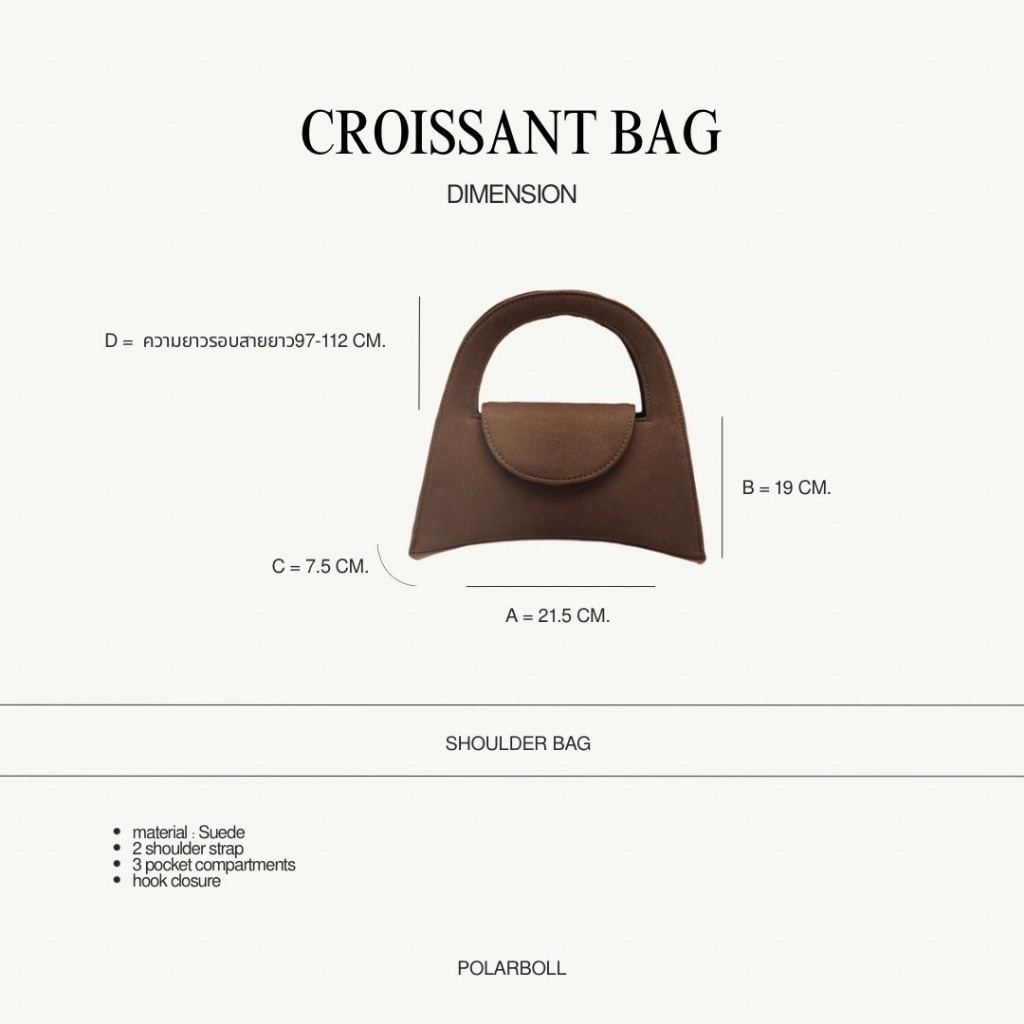 CROISSANT SUEDE กระเป๋าถือ หนังกลับ มีสายสะพายครอสบอดี้ให้ด้วย ดีไซน์เก๋ กระเป๋าใบเล็กกะทัดรัด มี 1 ช่องโล่ง และช่องเล็ก อีก 2 ช่อง