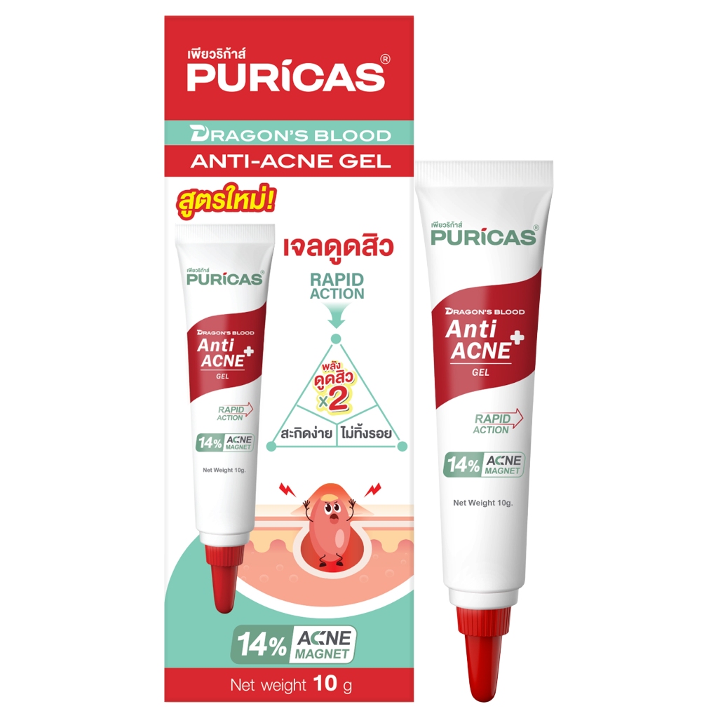 หมดปัญหาสิวกวนใจด้วย PURICAS Advanced Formula Anti-acne Gel เจลแต้มสิว สกัดจาก Dragon's Blood ยับยั้งการเกิดสิวและแบคทีเรีย สิวแห้งเร็ว ผิวไม่ลอกเป็นขุย ผิวนุ่นชุ่มชื้น ช่วยฟื้นฟูผิวให้แข็งแรง ลดความมันและต้นเหตุการเกิดสิว