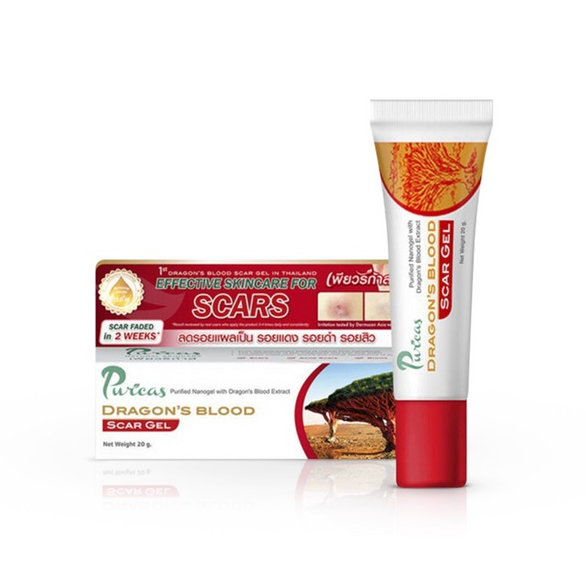 เจลลดรอยแผลเป็น รอยสิว รอยแดง รอยดำ ช่วยฟื้นฟูผิว อ่อนโยนต่อผิวแพ้ง่าย ผิวกระจ่างใส รอยแผลดูจางลง ด้วยสารสกัดจากธรรมชาติอย่าง Dragon’s Blood ช่วยซ่อมแซมผิวอย่างล้ำลึก
