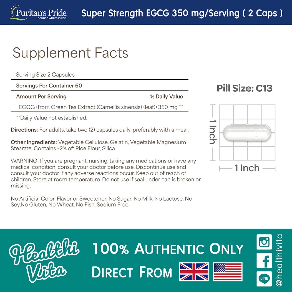 #Puritan #EGCG #ชาเขียว #skin #ผิว #หัวใจ #เล็บ #ริ้วรอย #ผิว #ผิวขาว #ผิวใส #ต่อต้านอนุมูลอิสระ #healthivita #วิตามิน #อาหารเสริม #ของแท้จากUSA #ราคาถูก