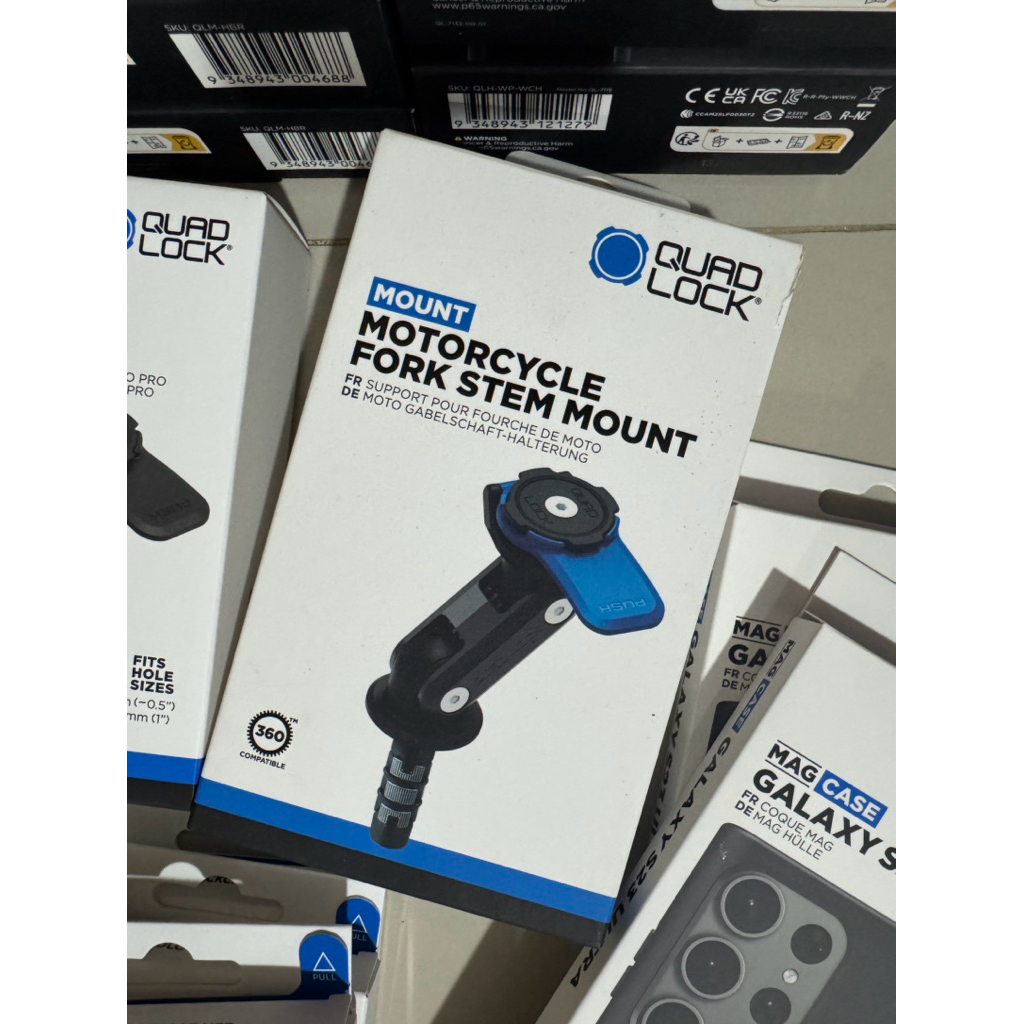 Both Quad Lock Fork Stem Mounts are compatible with all Quad Lock Cases and the Quad Lock Universal Adaptor.