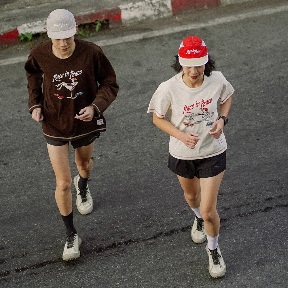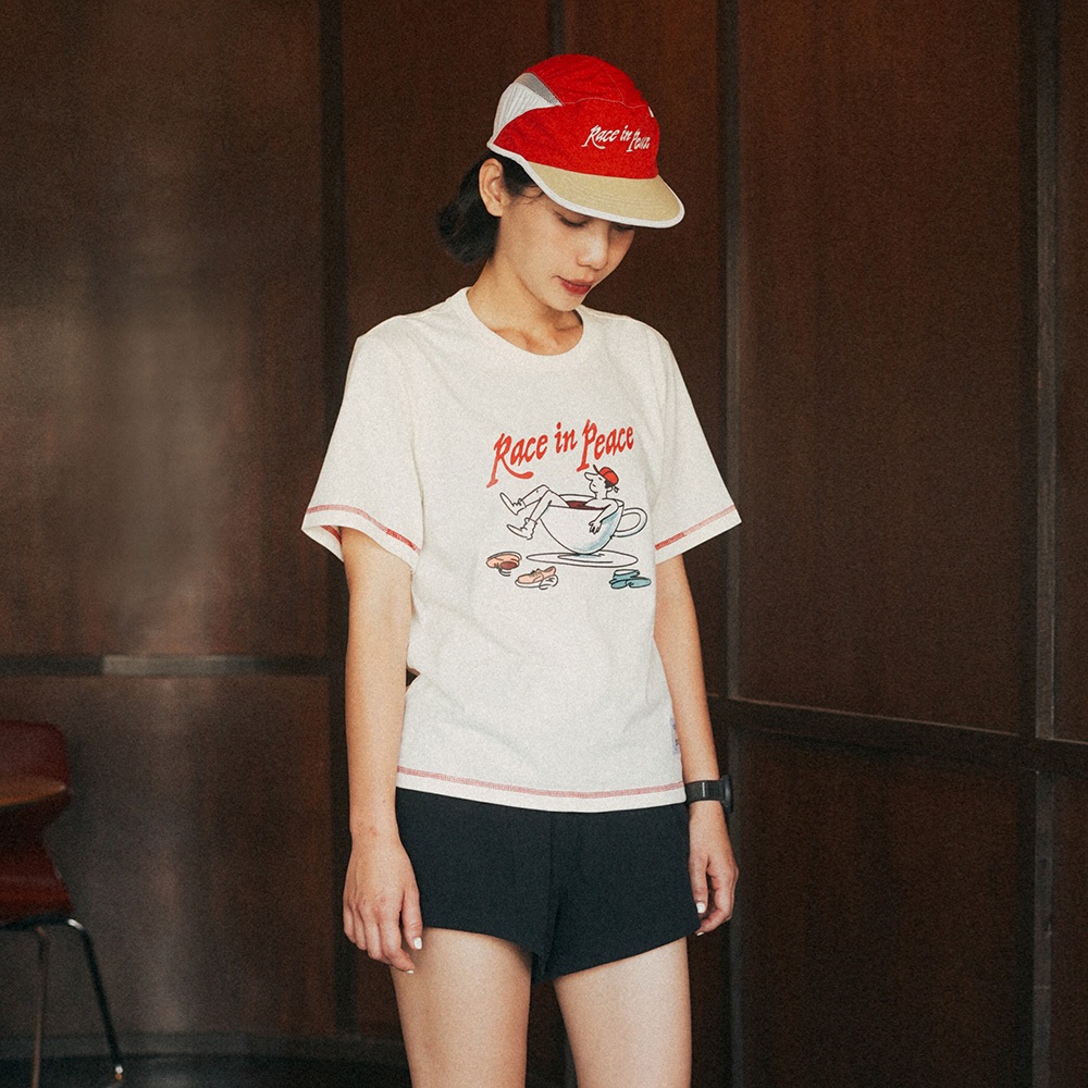 เสื้อทรง Crop Regular Fit แขนสั้น ที่ลายได้แรงบันดาลใจจาก Running Culture ผ้าคอตตอนนุ่มใส่สบายมาก เพิ่มดีเทลตะเข็บขอบและชายเสื้อสีแดงตัดกับตัวผ้าสีครีม ช่วยเพิ่มลูกเล่นแบบ ไม่ตะโกน