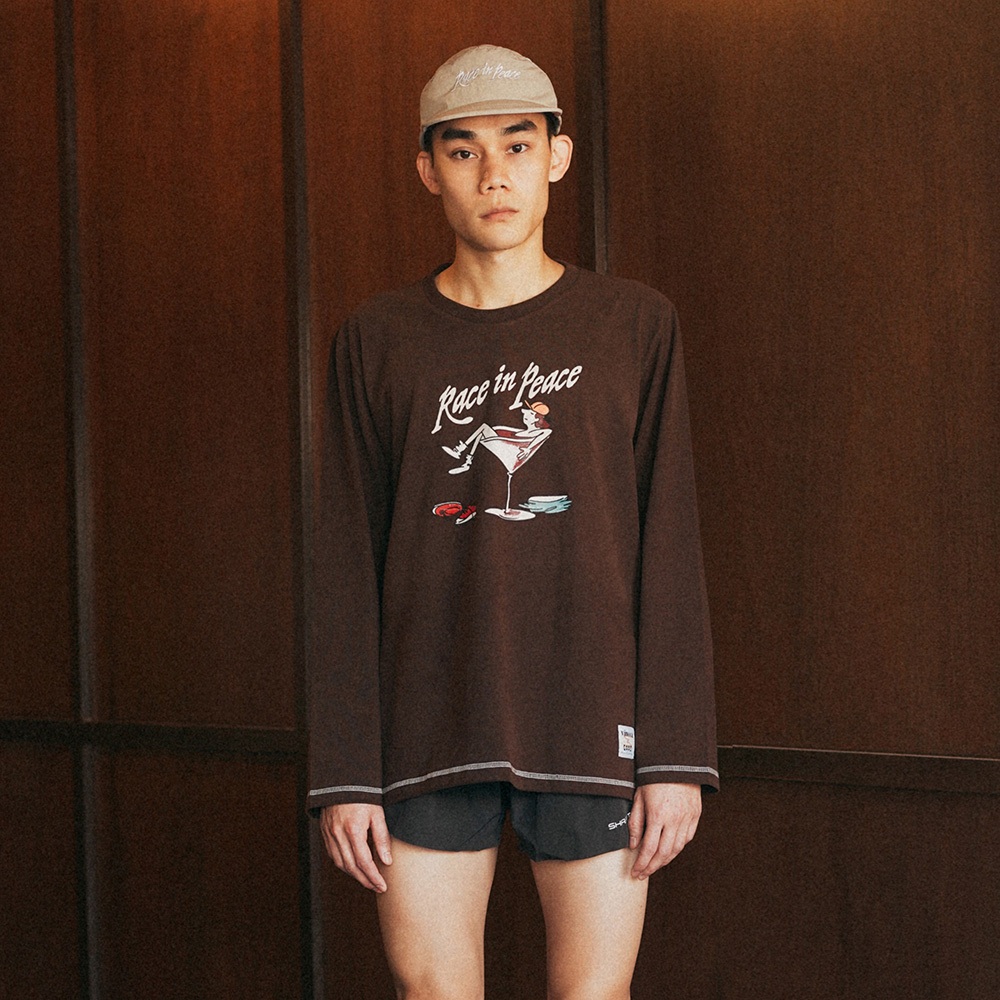 เสื้อทรง Crop Regular Fit แขนยาว ที่ลายได้แรงบันดาลใจจาก Running Culture ผ้าคอตตอนนุ่มใส่สบายมาก เพิ่มดีเทลตะเข็บขอบและชายเสื้อสีครีมตัดกับตัวผ้าสีน้ำตาล ช่วยเพิ่มลูกเล่นแบบ ไม่ตะโกน