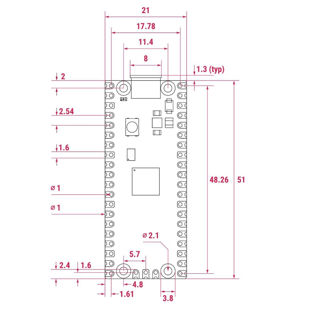 Raspberry Pi Pico 2 ไม่ได้ทำการบัดกรี เหมาะสำหรับการติดตั้งบนบอร์ด SMD