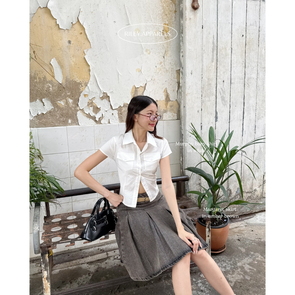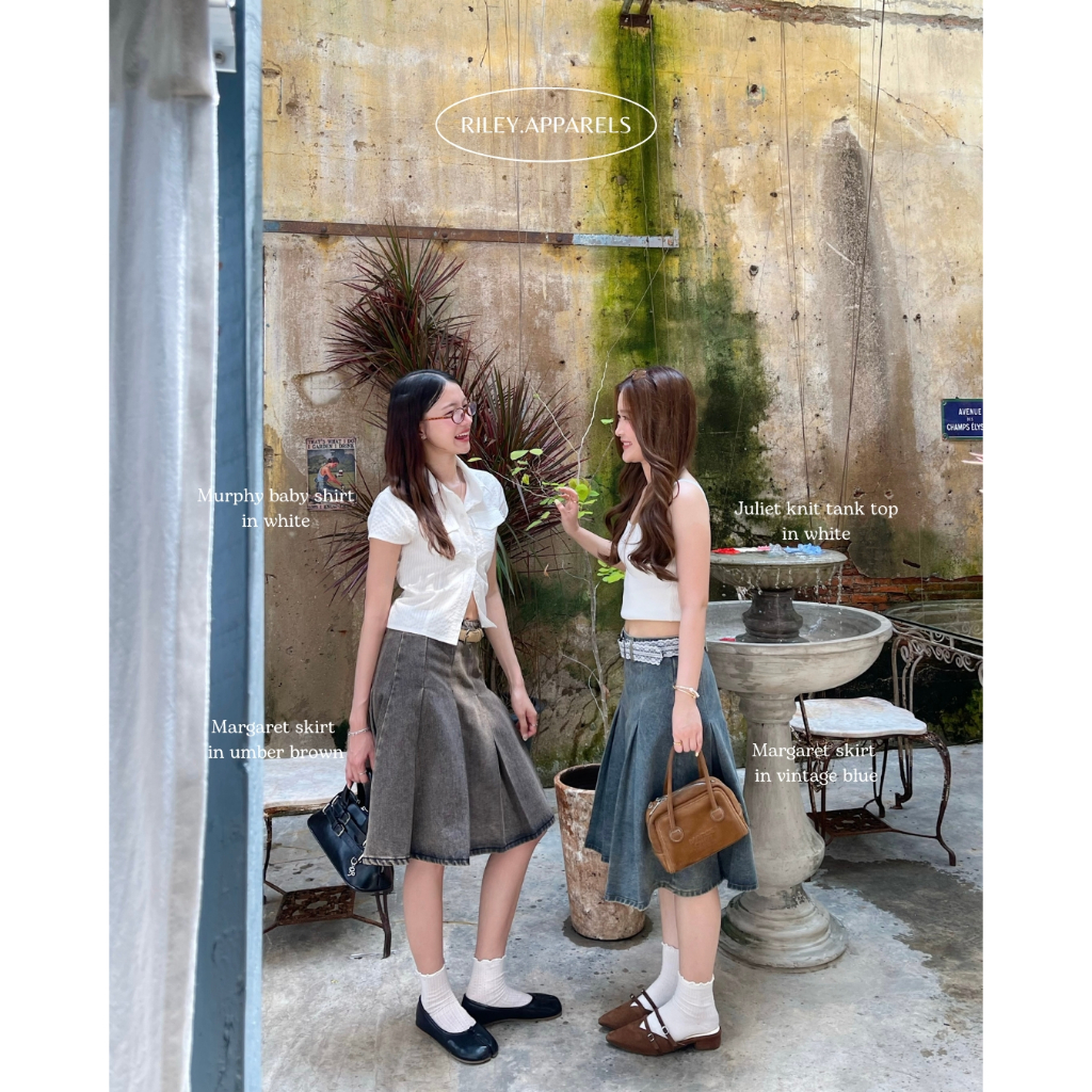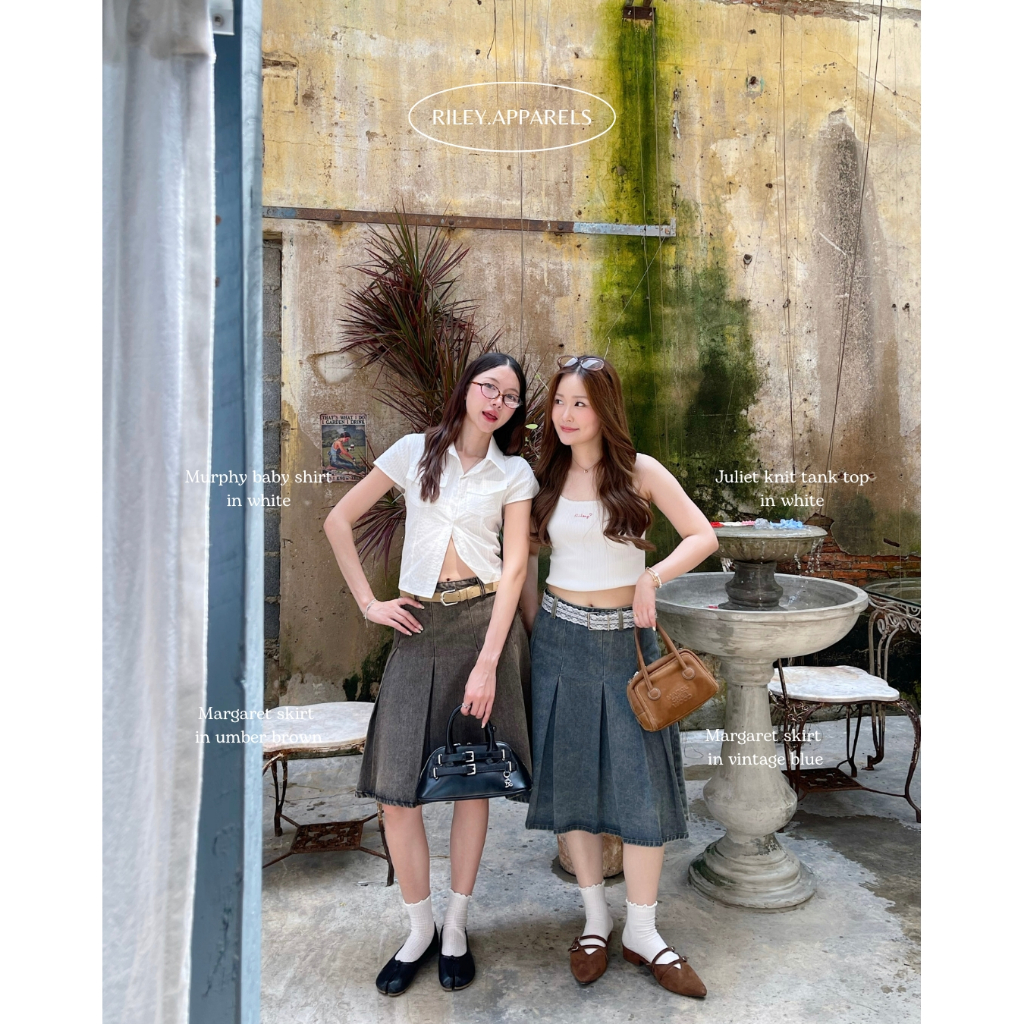 กระโปรงทรงพลีทอัดจีบรุ่นใหม่ เราเลือกใช้ผ้ายีนส์ความหนากำลังดีแต่ก็ไม่แข็งเกินไป ผ้าอยู่ทรงสวยทำให้ไม่ดูพองหรือบานออกมากเกินไป ฟอกสีมาสวยมากกกกๆๆ เป็นโทนสนิมที่แมทใส่ได้ง่าย รุ่นนี้เราแก้ทรงกันนานมากกด้วยความที่ยีนส์เป็นผ้าที่ควบคุมยากอยู่แล้วพอมาทรงแบบนี้คือทำยากสุดๆ แต่ทำมาแล้วคือสวยมากกคิดถูกมากที่ทำ น้องใส่กับเสื้ออะไรก็สวยจริงๆ ทำให้ลุคดูมีอะไรมากขึ้นสุดๆ แนะนำว่าควรมีติดตู้เลยเพราะว่าแมทใส่ในไทยหรือไปเที่ยวต่างประเทศก็เริ่ดแน่นอน!🤟🏻✨