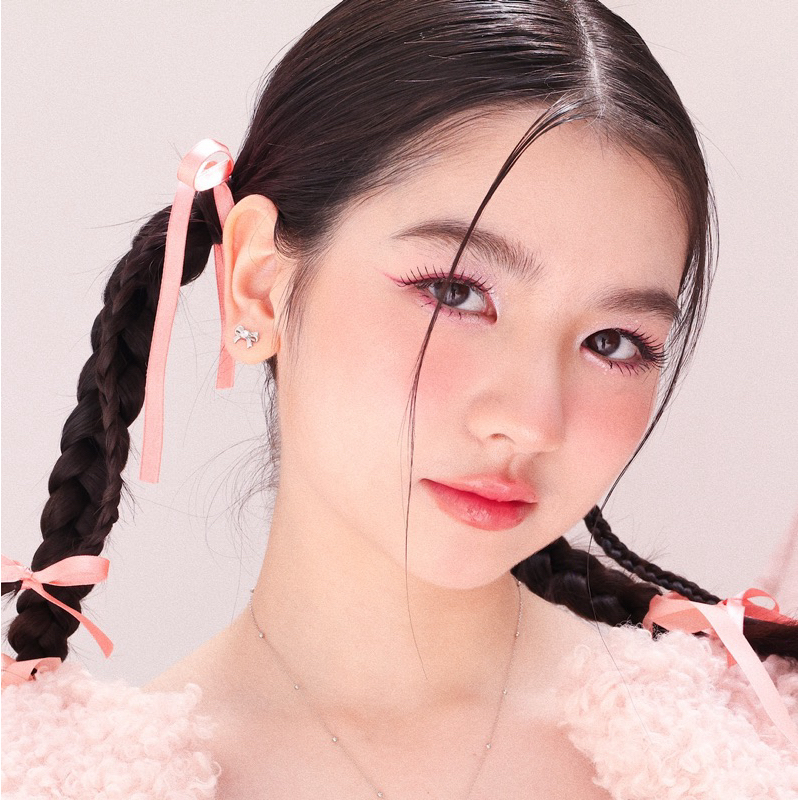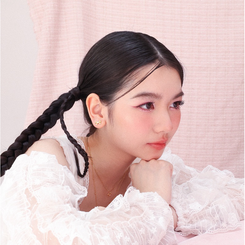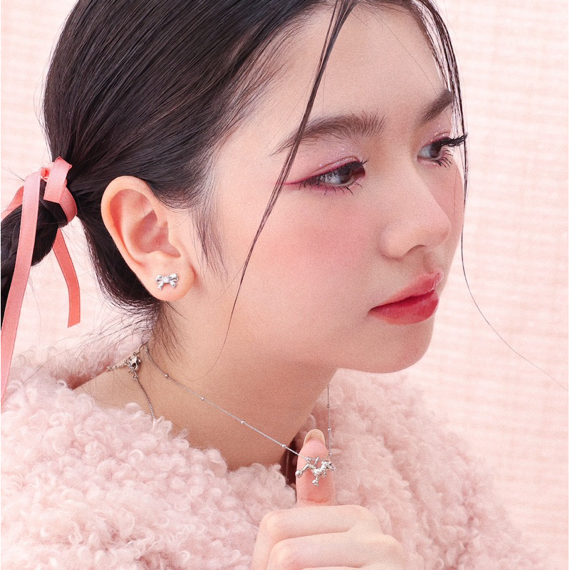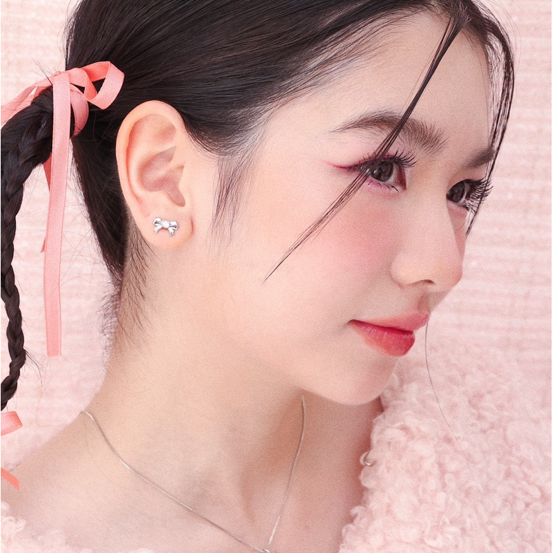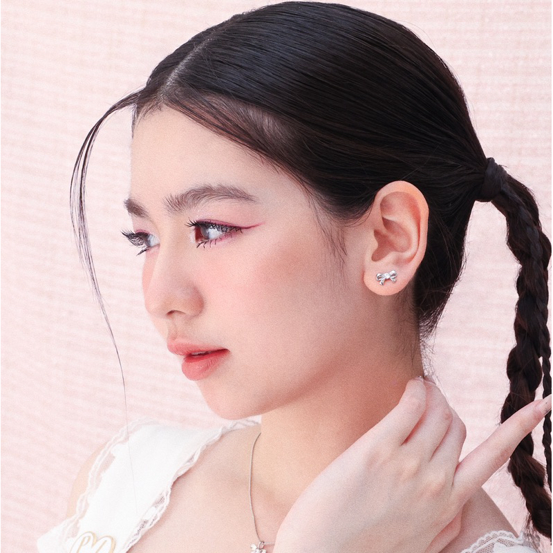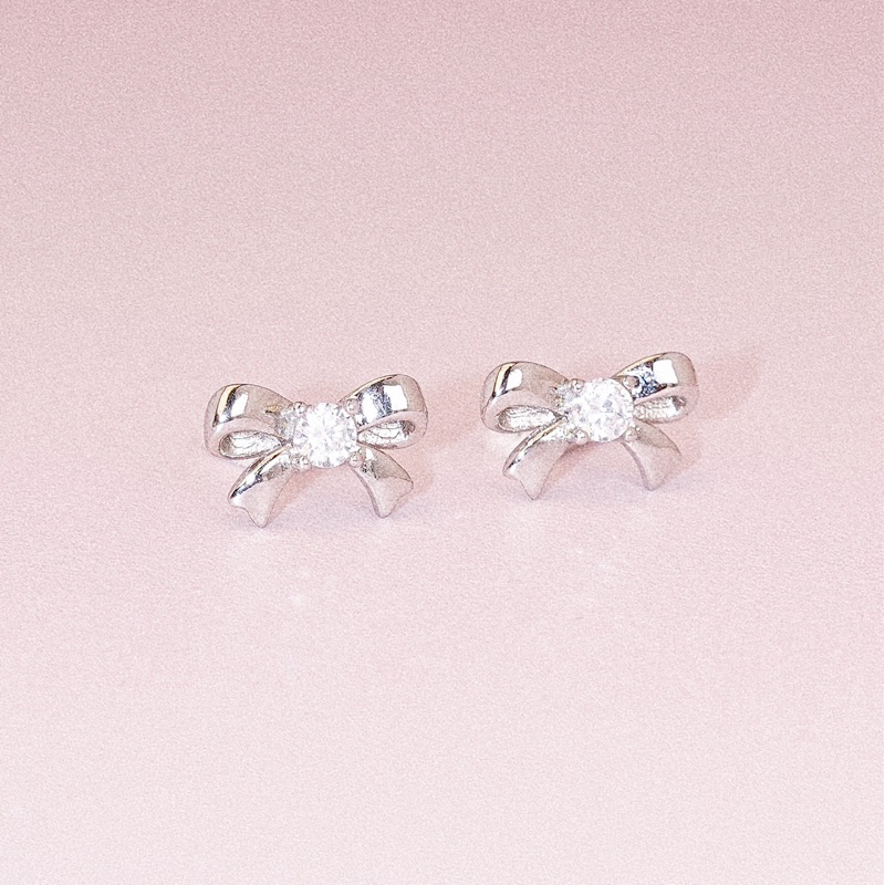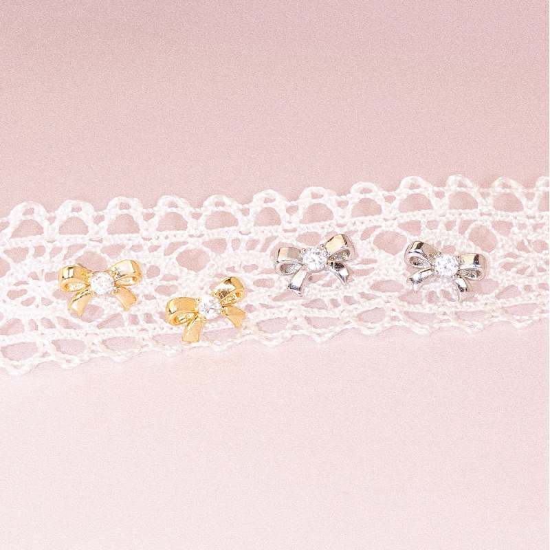 RINDA - Ribbon gem stud (gold/silver)