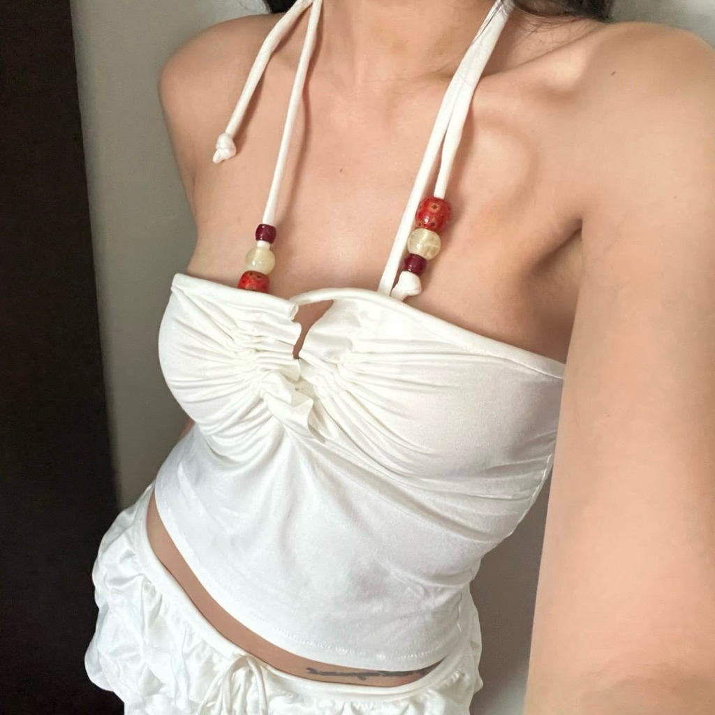 เสื้อผูกคอ แต่เค้ามีลูกเล่นนน กิมมิคคือสายรูดปรับได้ ใส่ได้ 5 แบบ WPSชอบมากอะไรแบบนี้ อะไรที่ 1 ตัวใส่ได้หลายดีไซน์ ตัวนี้คุ้มสุดๆค่ะ ใส่ซ้ำคนจำไม่ได้ ไปได้ทุกที่อยู่ที่แมทช์เลย ปาร์ตี้ ทะเล ลุคเท่ ลุคเปรี้ยว ได้หมดดดดด เอาอยู่!