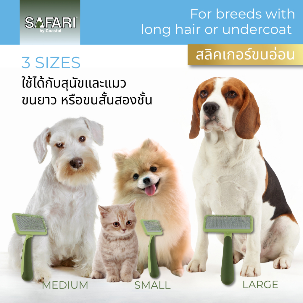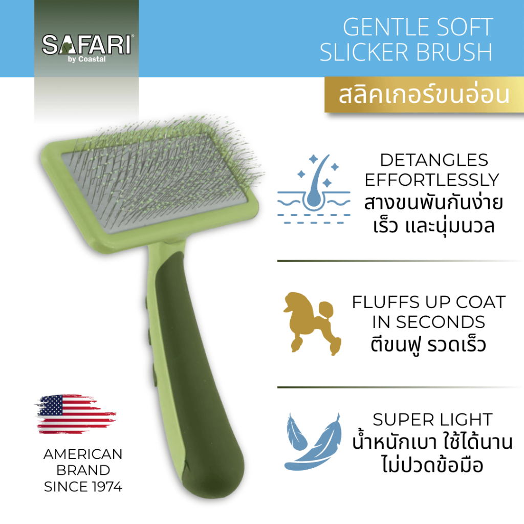 Your search for a gentle yet effective slicker brush ends with the Safari® by Coastal® Dog Soft Slicker Brush. Crafted with your dog's coat in mind, this brush is a game-changer. Featuring stainless steel pins, this brush swiftly and effortlessly eliminates mats, tangles, and loose hair, ensuring your dog's coat remains in impeccable condition. The high-quality design doesn't stop at grooming – regular use of this brush works wonders in reducing shedding, fostering a healthier coat for your furry friend and a tidier home for you. The non-slip grip adds a touch of practicality to grooming sessions, guaranteeing a comfortable experience for both you and your dog. The soft slicker brush strikes the perfect balance between gentleness and effectiveness, making it an essential tool for your pet care routine. Choose the Safari® by Coastal® Dog Soft Slicker Brush for a grooming experience that's both comforting and efficient.