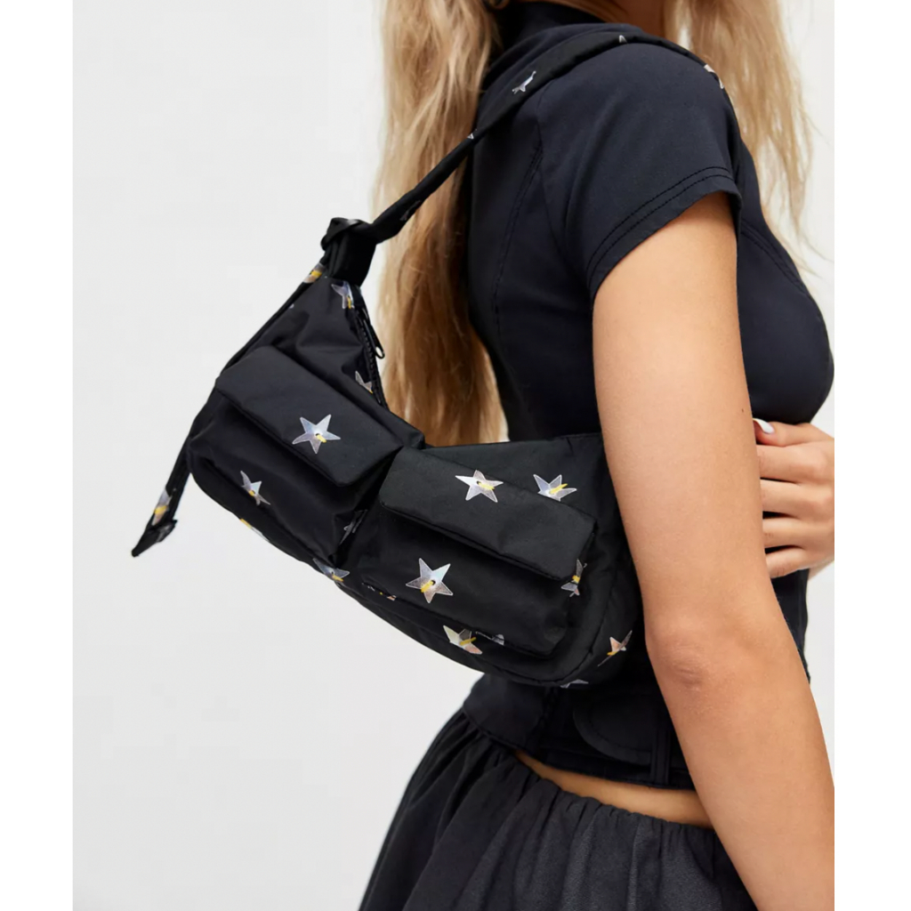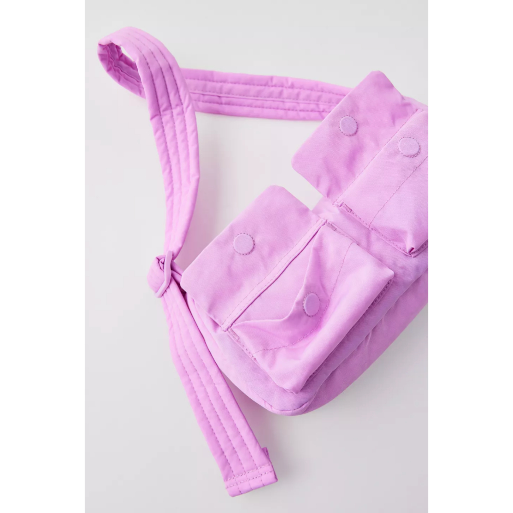 A baguette style purse with two external flap pockets for quick access to your essentials.