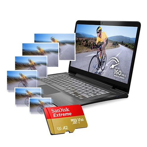 จับภาพการเคลื่อนไหวที่รวดเร็วยิ่งขึ้นและบันทึกวิดีโอ Full HD หรือ 4K UHD ได้มากขึ้นด้วยสมาร์ทโฟนที่ใช้ Android, กล้องแบบเปลี่ยนเลนส์ได้, โดรน หรือกล้องแอคชั่น GoPro การ์ด SanDisk Extreme microSD UHS-I สร้างขึ้นเพื่อความทนทานสูงสุดภายใต้สภาวะแวดล้อมที่ท้าทาย ความเร็วสูงสุดช่วยให้คุณบันทึกทุกรายละเอียดของการผจญภัยและไม่ต้องรอการถ่ายโอนวิดีโอระหว่างอุปกรณ์