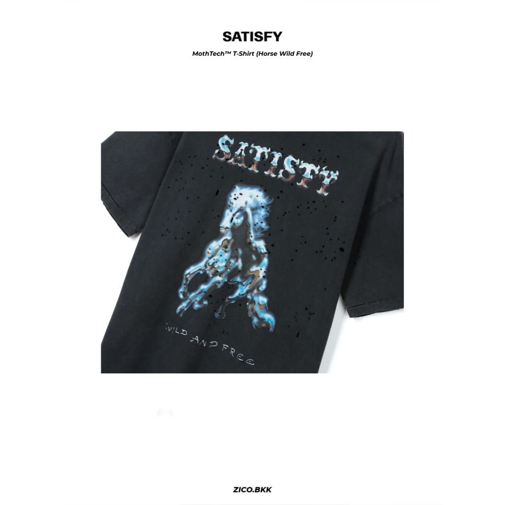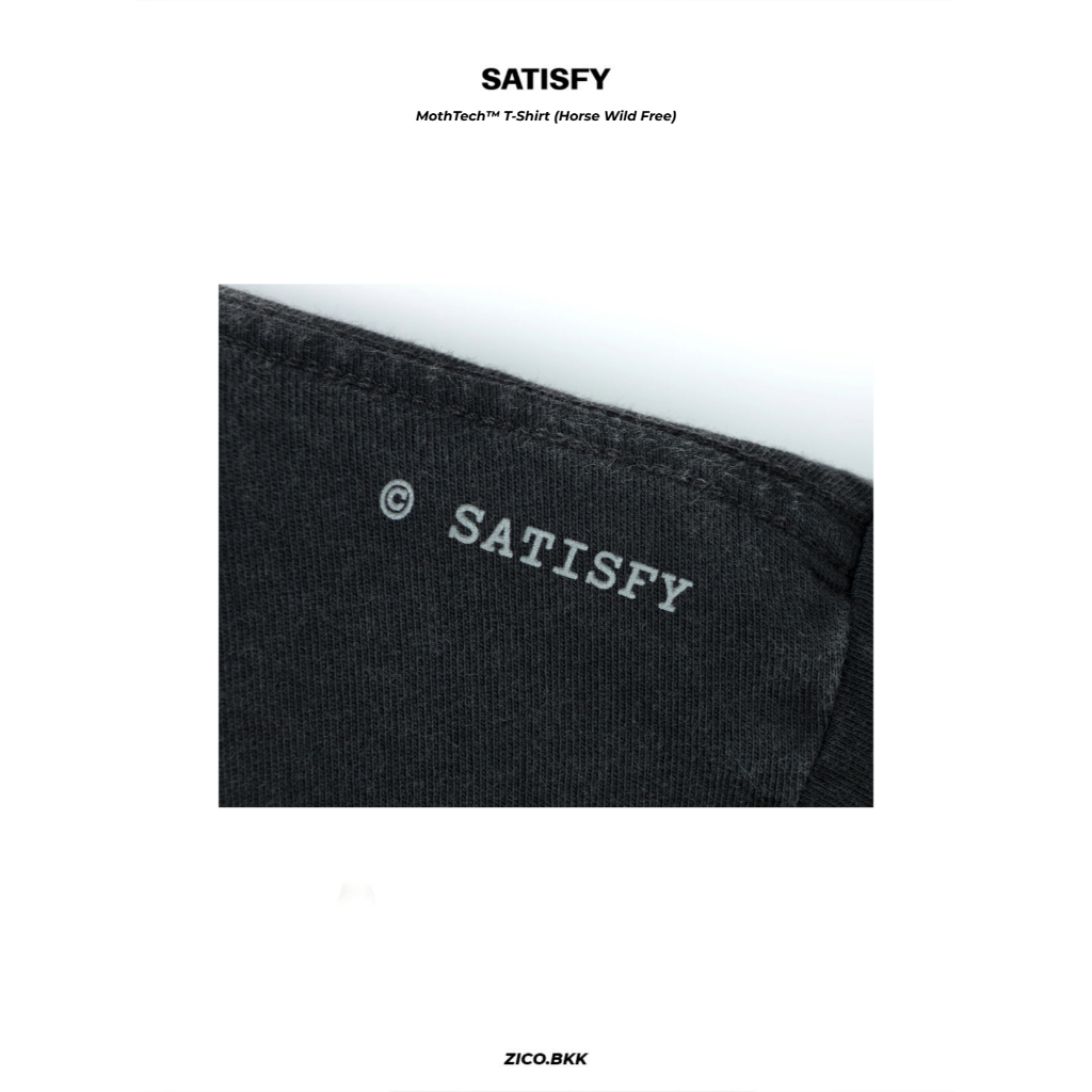 โลโก้ SATISFY อยู่บนหน้าอก และโลโก้ Workhorse ที่แสดงถึงการทำงานอย่างหนักหน่วงอยู่ด้านล่าง🐎🔥