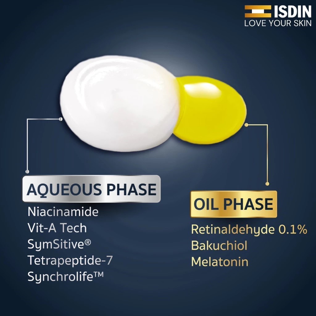 ผลิตภัณฑ์เซรั่ม ลดเลือนริ้วรอยสําหรับกลางคืน ชนิดเนื้อ 2 เฟส ประกอบไปด้วยเฟสที่เป็นออยล์ (Oil phase) และ เฟสที่ละลายน้ํา (Aqueous phase) เป็นการผสานพลังระหว่าง อนุพันธ์วิตามิน เอ เรตินาล (Retinaldehyde) และเมลาโทนิน (Melatonin) และสาร สกัดจากธรรมชาติ 100% ในการซ่อมแซมผิว กระตุ้นการสร้างเซลล์ผิวใหม่ ฟื้นฟูสภาพผิวที่เสียหายจากแสงแดด และมลภาวะ คืนผิวให้กระชับ เรียบเนียนขั้นสุด พร้อมด้วยสาร ปลอบประโลมผิว (soothingcomplex) ที่ช่วยให้คุณรู้สึกสบายผิว ปราศจากอาการระคายเคืองตลอดค่ําคืน ผลิตภัณฑ์เหมาะกับผู้ที่ มีอายุ 35 ปีขึ้นไป หรือผู้ที่มีปัญหาผิวเสียจากแสงแดด และมีริ้วรอย มาก ต้องการการฟื้นฟูสภาพผิวเป็นพิเศษ