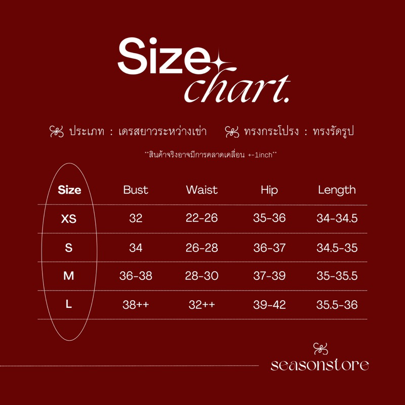 🍒 ทางร้านวัดไซต์สินค้าจริงต่อสัดส่วนลูกค้าทุกคนเพื่อให้ลูกค้าทุกท่านสามารถใส่สวยได้ทุกชุด