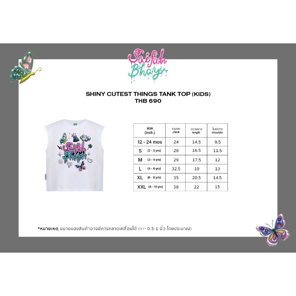 1. ขนาดของสินค้าอาจมีการคลาดเคลื่อนได้ ( +/- 0.5-1 นิ้ว โดยประมาณ)