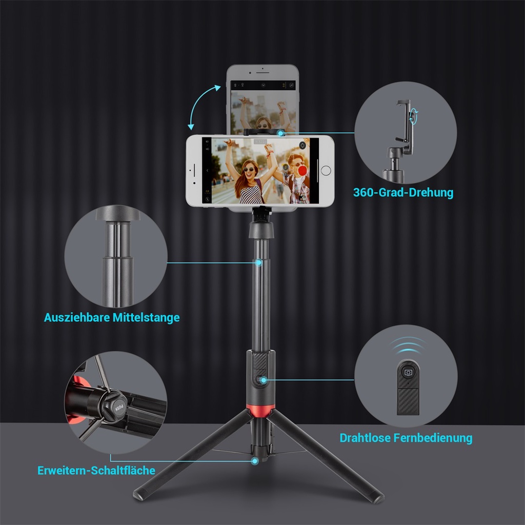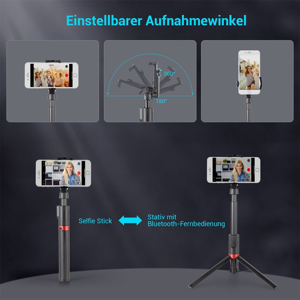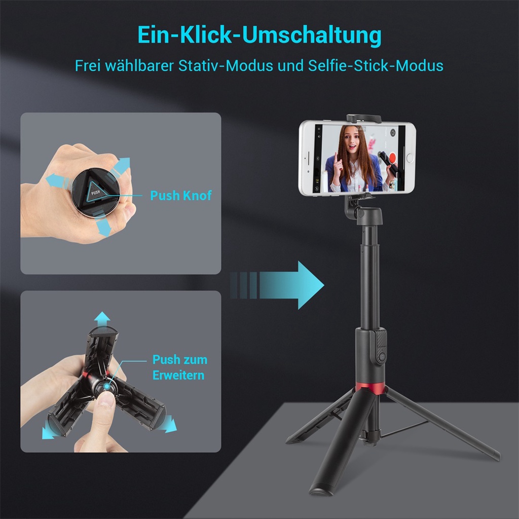 1. Free switch between selfie and tripod modes.