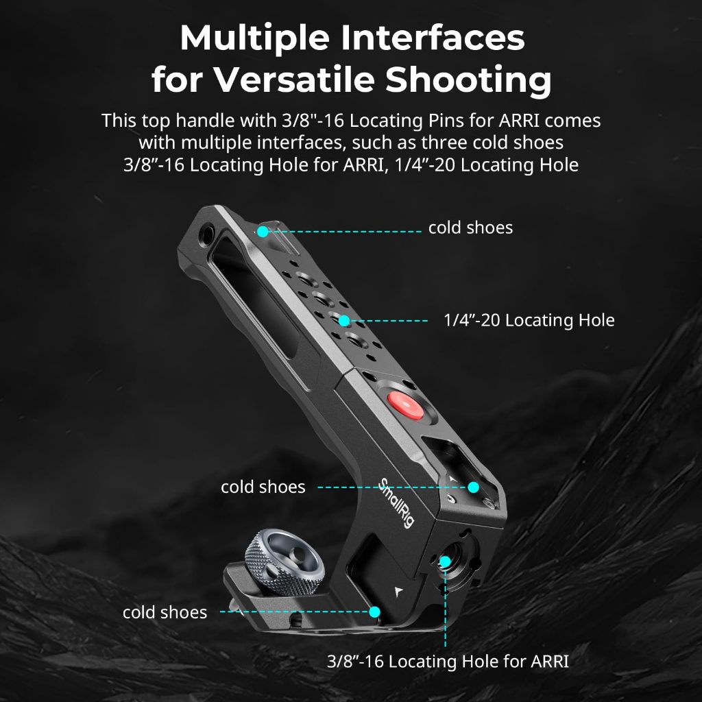 ด้ามจับด้านบน SmallRig พร้อม Rec Trigger (ARRI Locating Screw) 4927 ออกแบบมาเพื่อเพิ่มการเคลื่อนไหวของกล้องและเพิ่มประสบการณ์การถ่ายภาพ ที่จับยึดกับกรงอย่างแน่นหนาผ่านสกรูค้นหา ARRI เพื่อป้องกันการบิดงอ ด้วยปุ่มบันทึกในตัวที่ด้านบนของที่จับสามารถเรียกใช้การบันทึกได้โดยการกดทำให้ไม่จำเป็นต้องกดปุ่มกล้องส่งผลให้ประสบการณ์การถ่ายภาพราบรื่นขึ้นและมีเสถียรภาพมากขึ้น ที่จับสามารถใช้เพื่อควบคุมกล้องยี่ห้อต่างๆ (Sony, Canon, FUJIFILM, Panasonic) ด้วยสายควบคุม พื้นที่จับมีซิลิโคนป้องกันการลื่นไถลตามหลักสรีรศาสตร์เพื่อการจับที่สบายและปลอดภัย มาพร้อมกับอินเทอร์เฟซหลายช่องเพื่อตอบสนองความต้องการในการถ่ายภาพที่หลากหลาย: รองเท้าเย็นในตัวสามรองเท้าสำหรับติดไมโครโฟน (3487), ไฟ LED (4660, 4055), หรือตัวยึดจอภาพ (2905B) พร้อมกัน นอกจากนี้ยังมีรูระบุตำแหน่ง ARRI 3/8” -16, รูระบุตำแหน่ง 1/4” -20 สำหรับติดอุปกรณ์เสริมเช่นที่ยึดจอภาพ (2903B), แขนวิเศษ (5141) ช่วยให้สามารถขยายจอภาพเครื่องส่งสัญญาณไร้สายเครื่องรับสัญญาณเสียงและ อุปกรณ์อื่นๆ อีกมากมาย