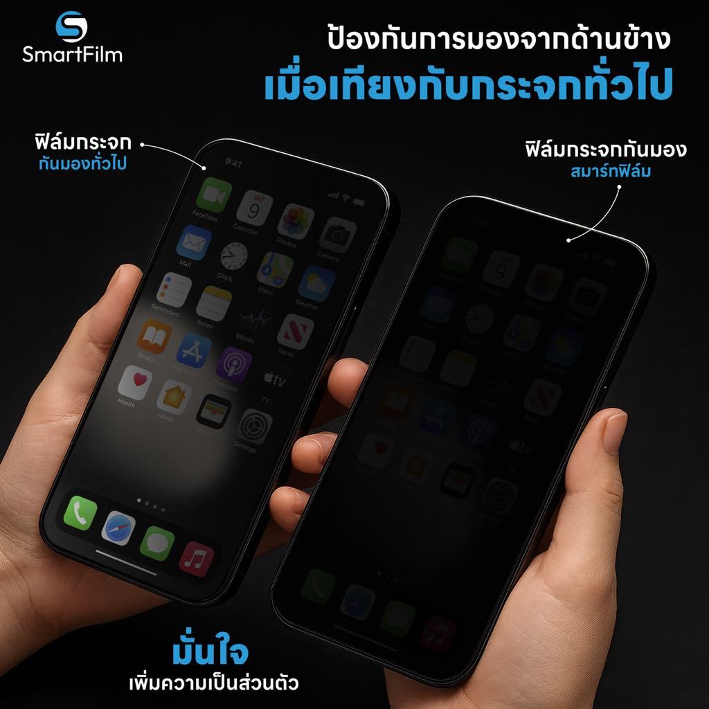 ฟิล์มกระจก Smart Film TG FF PV MT เหมาะสำหรับผู้ที่ต้องการทั้ง ความเป็นส่วนตัว + ผิวด้านลดรอยนิ้วมือ + ความแข็งแรงทนทาน ในหนึ่งเดียว