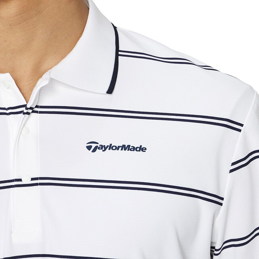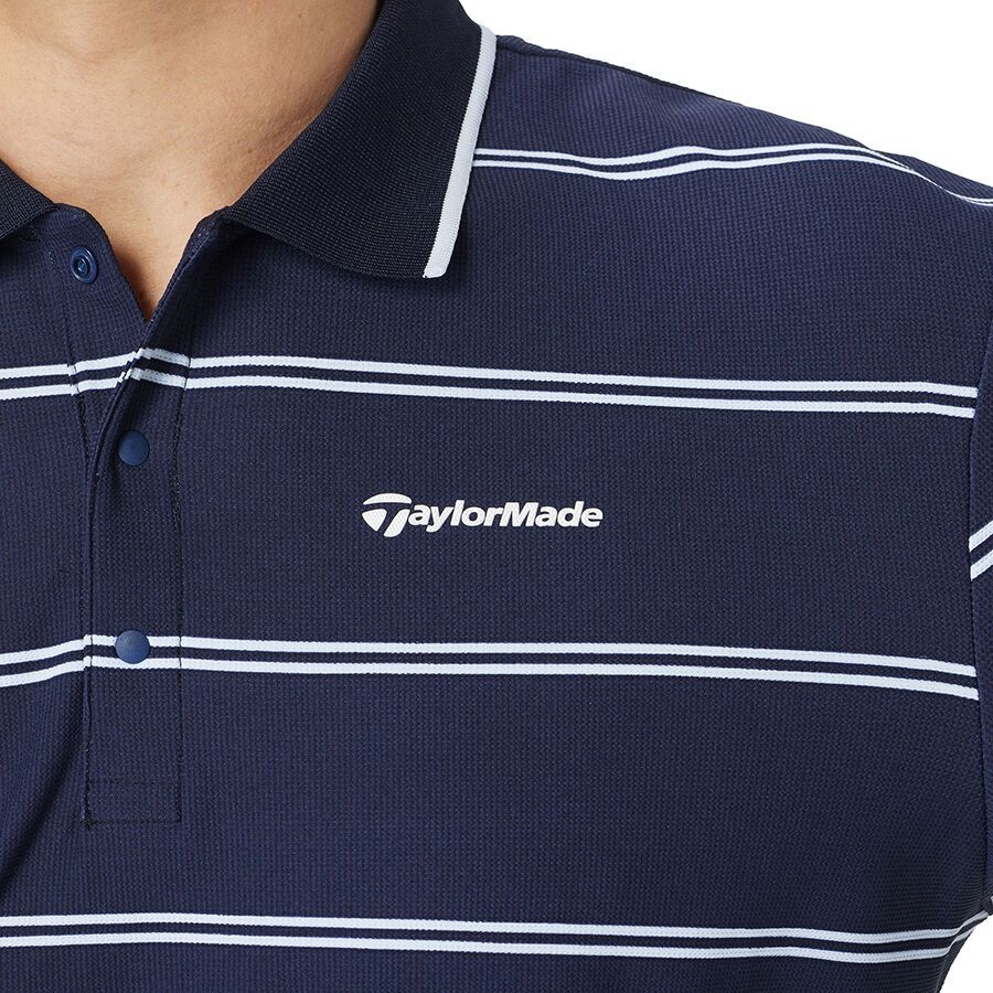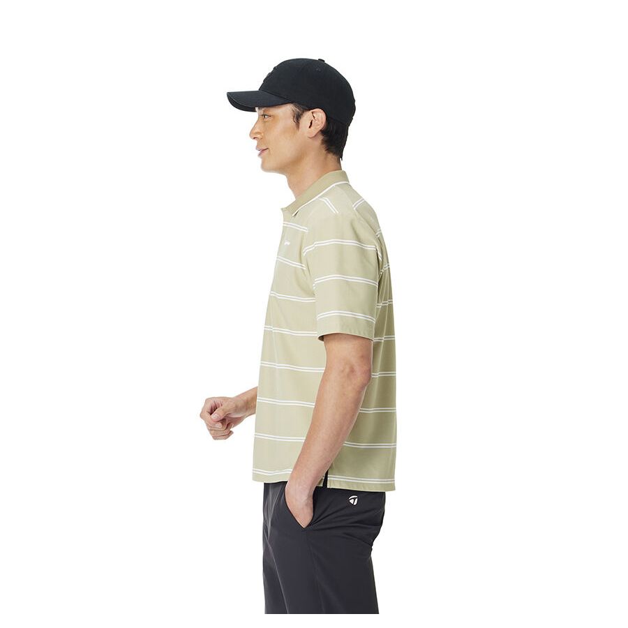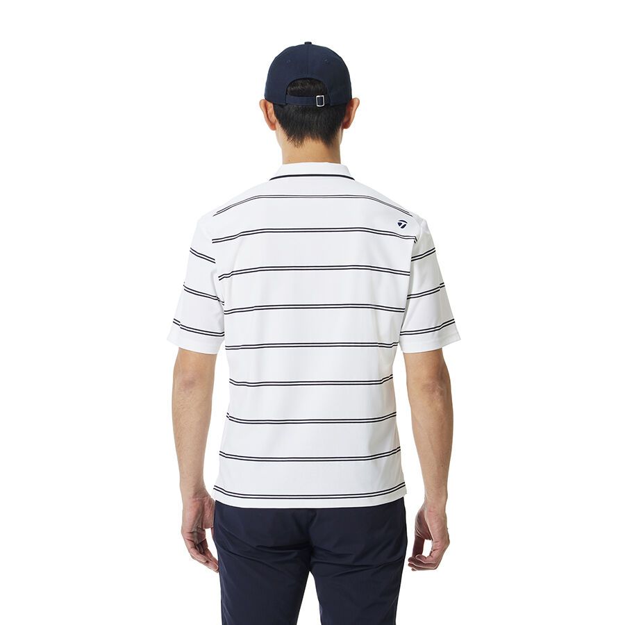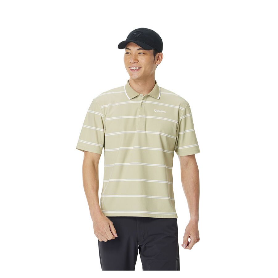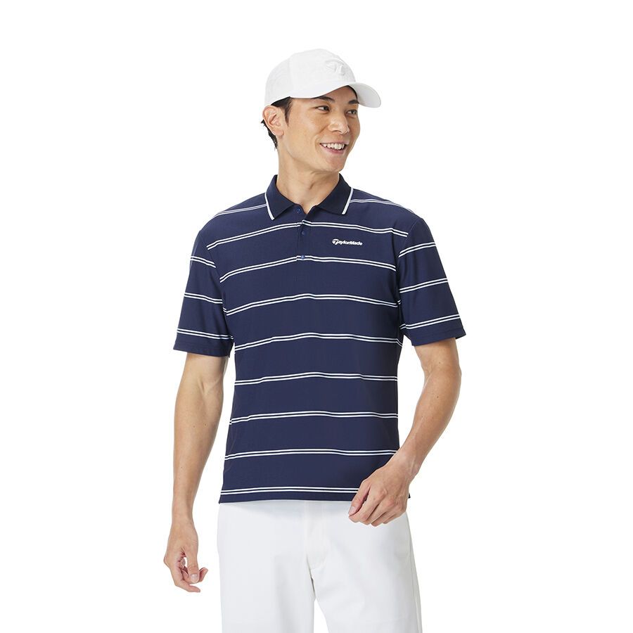 This short-sleeved polo shirt features a border design that combines elegance and casualness. Made from moisture-wicking, quick-drying material.