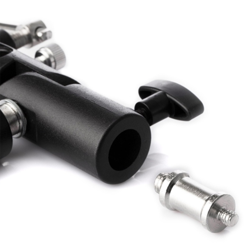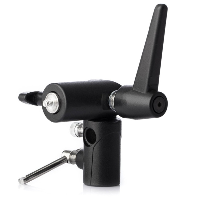 เหมาะสำหรับถือซอฟต์บ็อกซ์หรือร่มบนขาตั้งไฟและช่วยให้สามารถกะพริบจากแนวนอน / แนวตั้งหรือตรงกลางและต่ำ