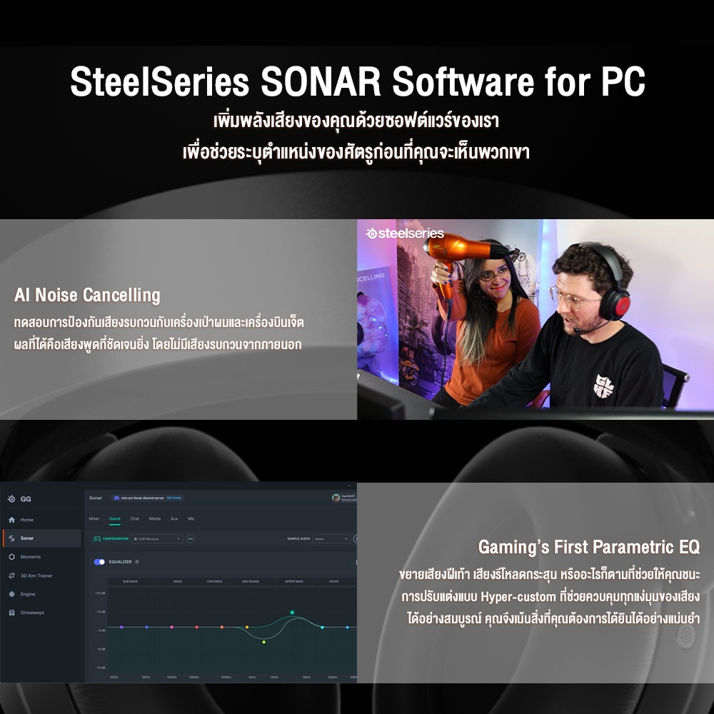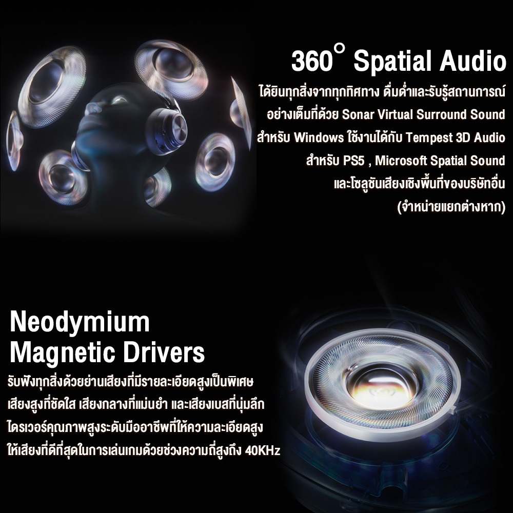 ● รองรับระบบเสียง 360° Spatial สำหรับ PC (Sonar Software) และ PS5 Tempest 3D audio)