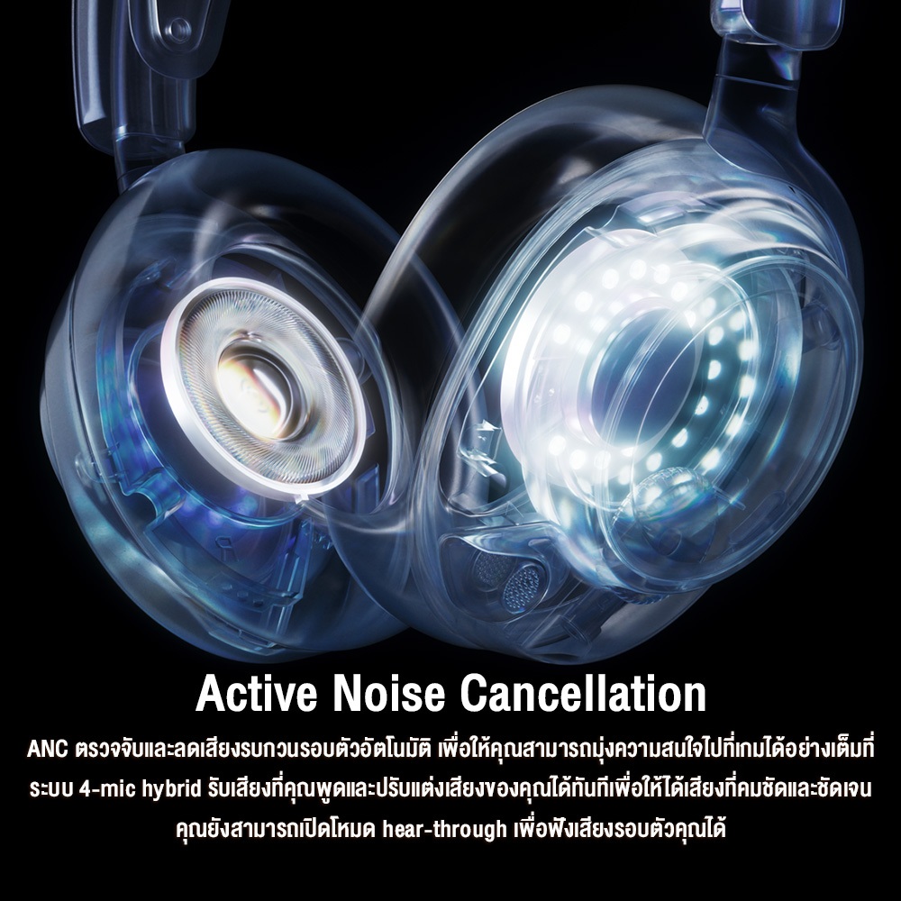 ● Active Noise Cancellation: 4-mic hybrid design with Transparency Mode