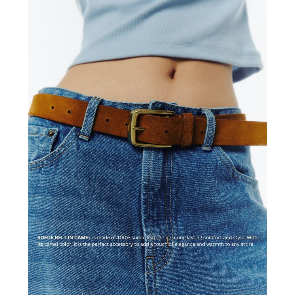 Suede Leather Belt in Camel and Black