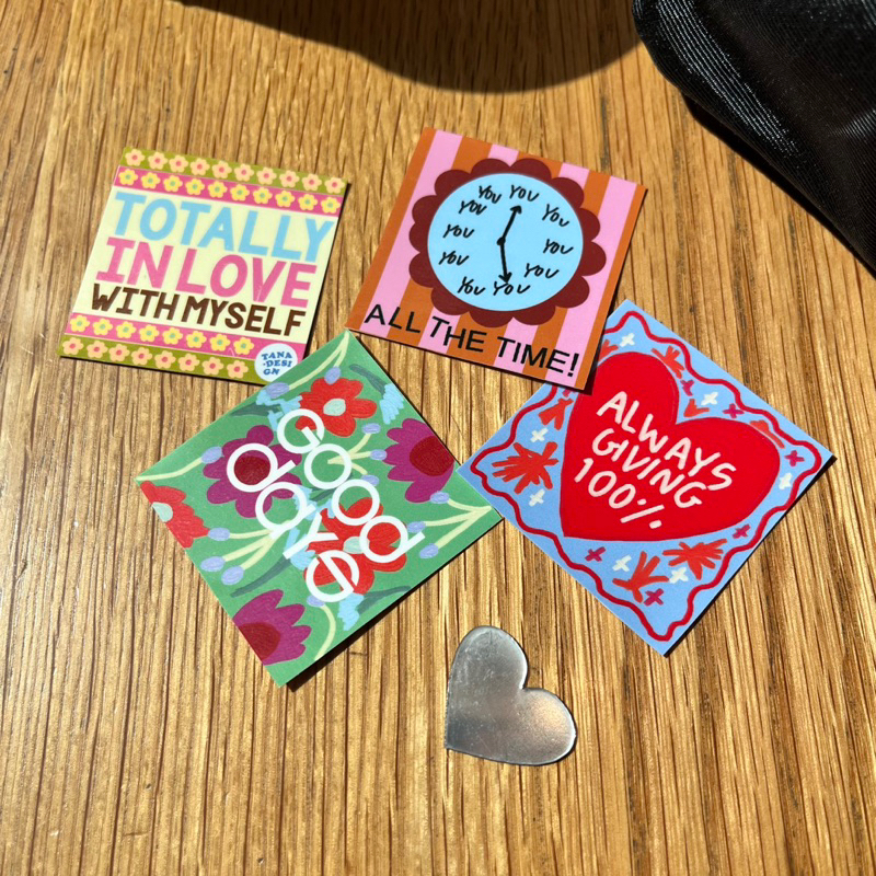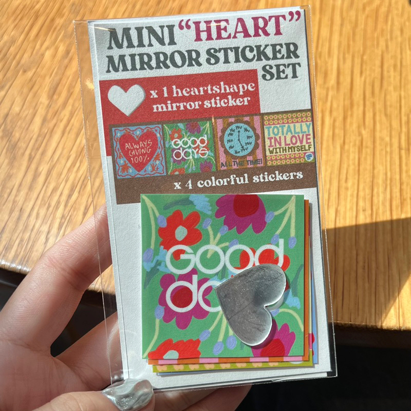 เซทสติกเกอร์กระจกจิ๋วรูปหัวใจ 1 ชิ้น + สติกเกอร์ตกแต่งอีก 4 ชิ้น