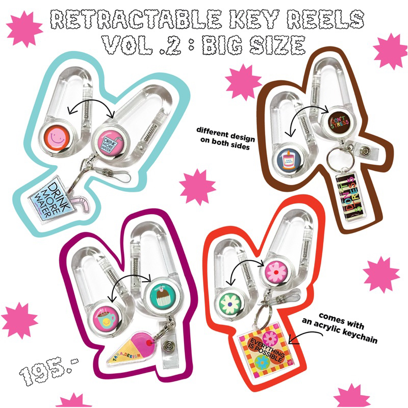 ขนาดตัวเกี่ยวใหญ่ขึ้น เหมาะสำหรับคล้องกับวัสดุที่มีความหนา มีลาย 2 ด้าน มาพร้อมพวงกุญแจ 1 ชิ้น
