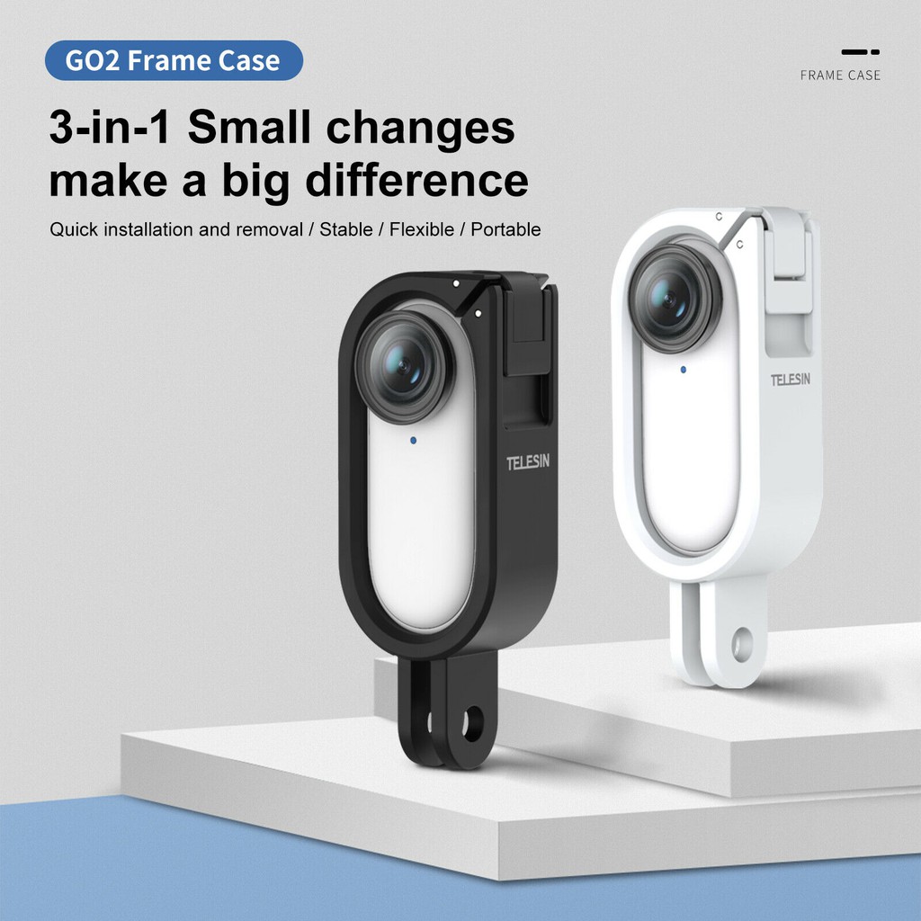• GO2 can be disassembled without removing the bottom adapter screw, pulling the main body snap away from the camera, then putting the GO2 into the GO2 frame case and pressing the snap.
