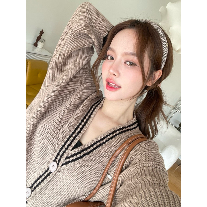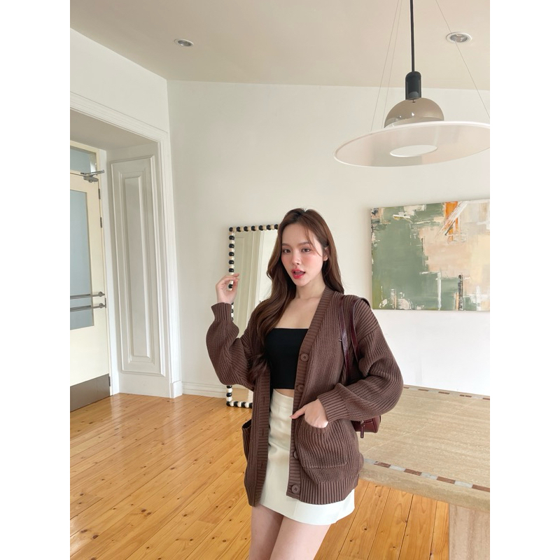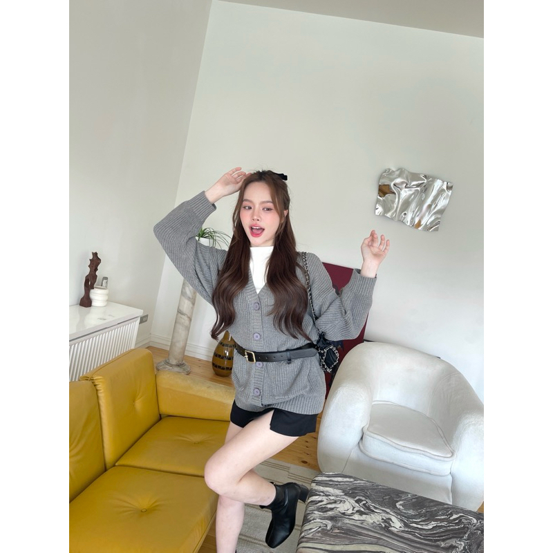 คาร์ดิแกนโอเวอร์ไซส์คอวีที่ทำออกมาแล้วใส่ได้กับทุกหุ่นจริงๆ เนื้อไหมพรมจะเป็นไหมพรมสั่งทอพิเศษ มีความนุ่มและทิ้งตัว ไม่สากไม่บาดผิว ไม่ระคายเคืองเวลาใส่ ใส่แล้วไม่กลมไม่พอง และไม่ดูตันแน่นอน ประหนึ่งออนนี่เกาหลีมาก🧣มีดีเทลกระเป๋าด้านข้างสองอันไว้ให้ซุกมือหรือเก็บของน้อยๆ และอีกดีเทลที่น้อยแต่มากจริงๆจะเป็นโลโก้เหล็กเพิ่มความเรียบหรู เป็นอีกรุ่นที่เป็น Must have item จริงๆ