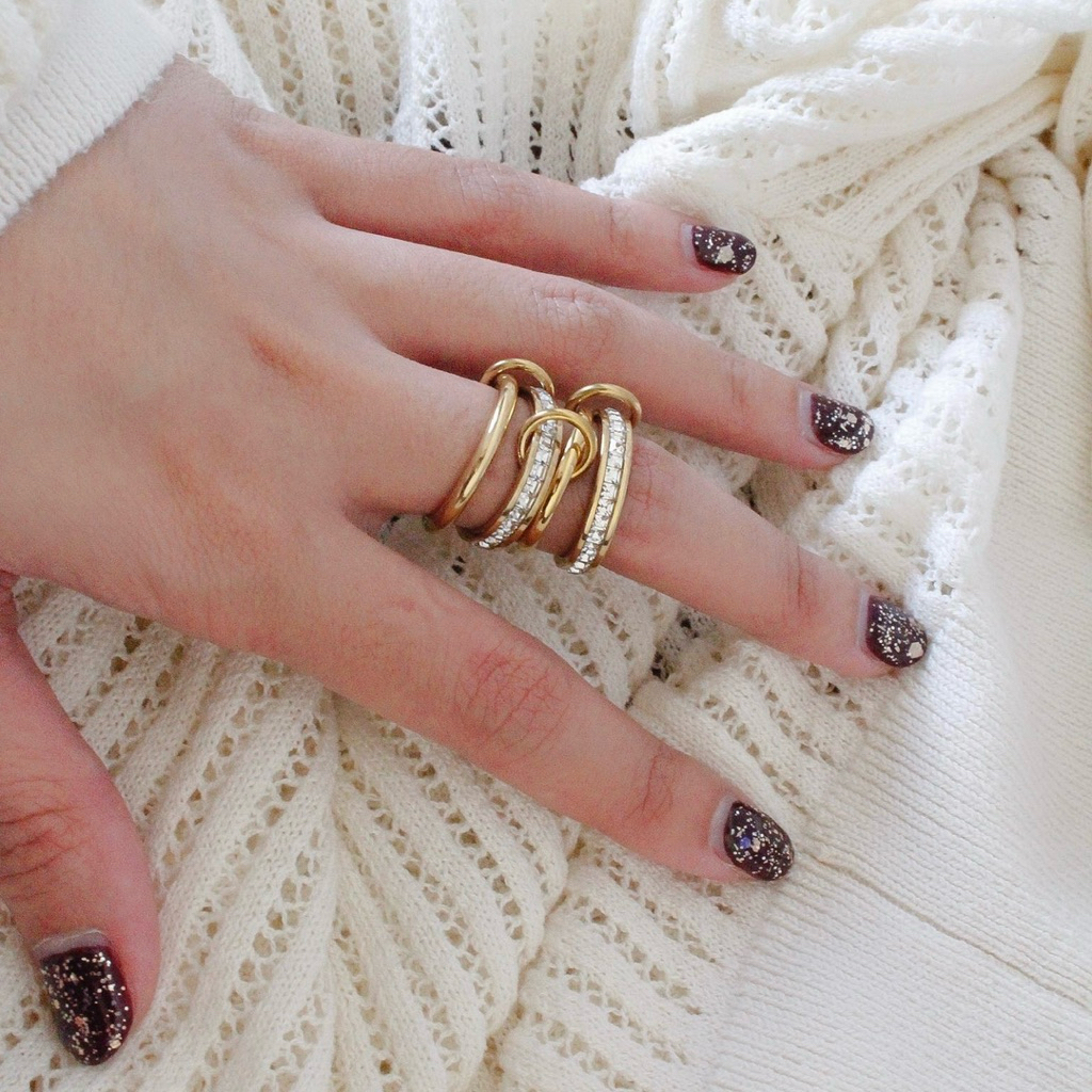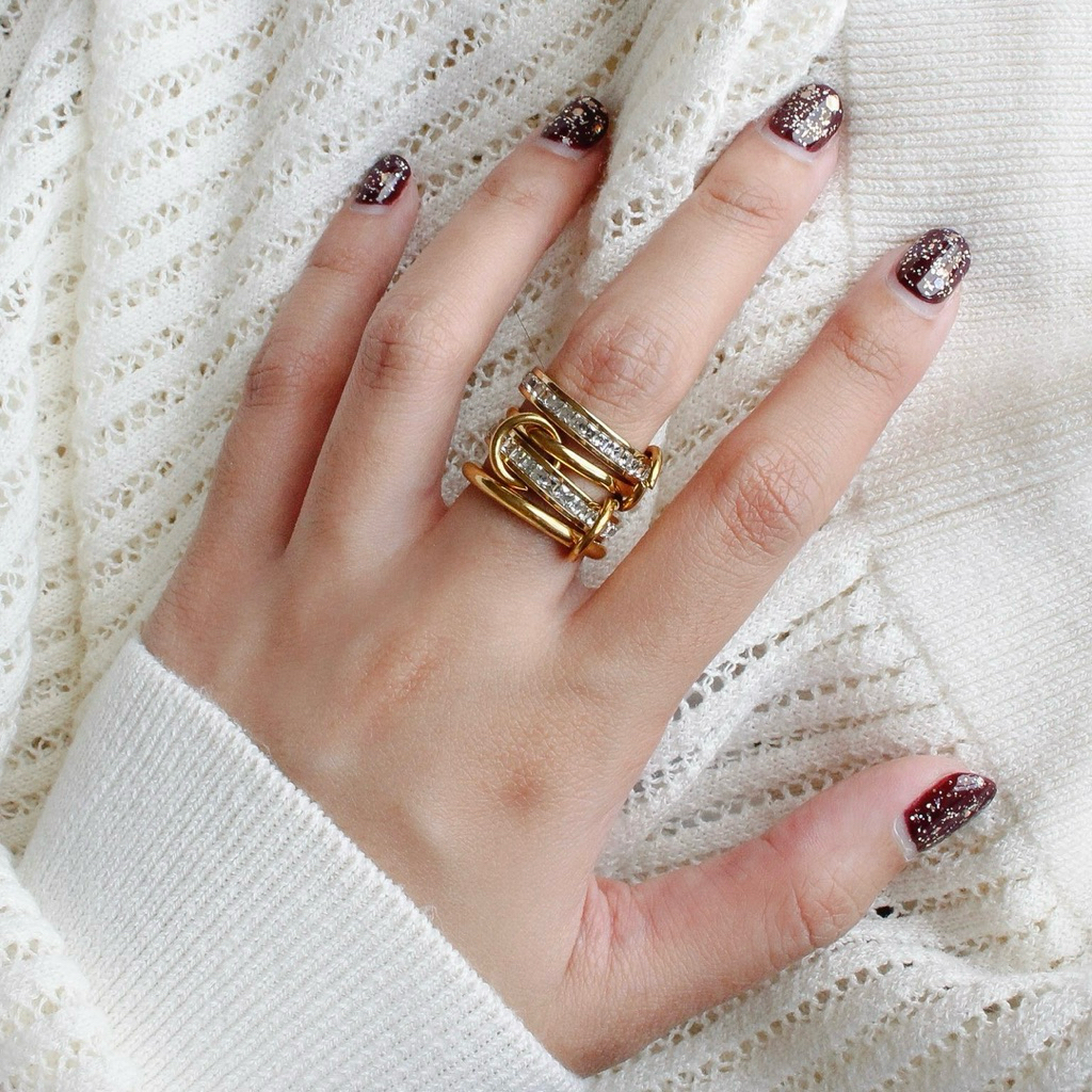 พร้อมส่งร้านไทย แหวน แหวนเกาหลี ปรับขนาดได้ แหวนเงินทอง ทรงเ…