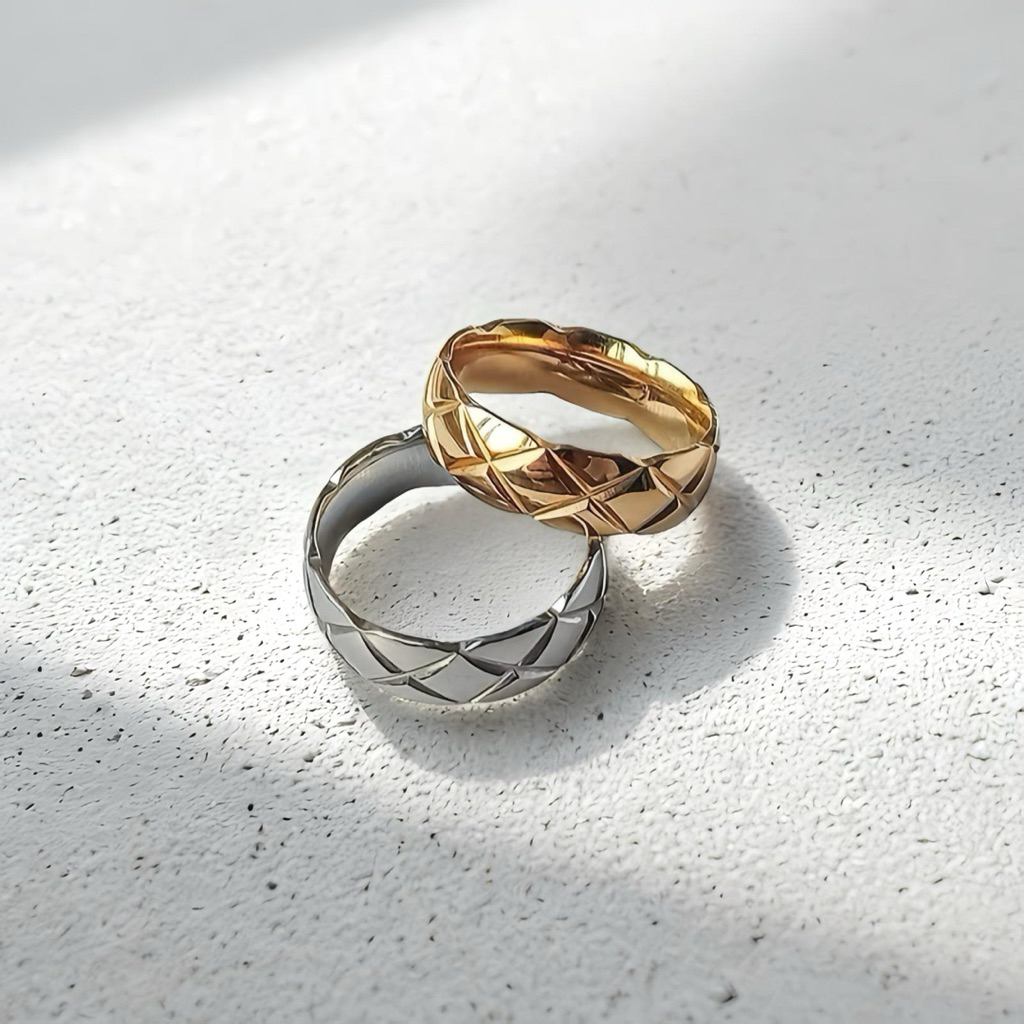 แหวนเหล็กไทเทเนียมเคลือบทองโรสโกลด์ 18K แบบหรูหรา สวมใส่ง่าย…