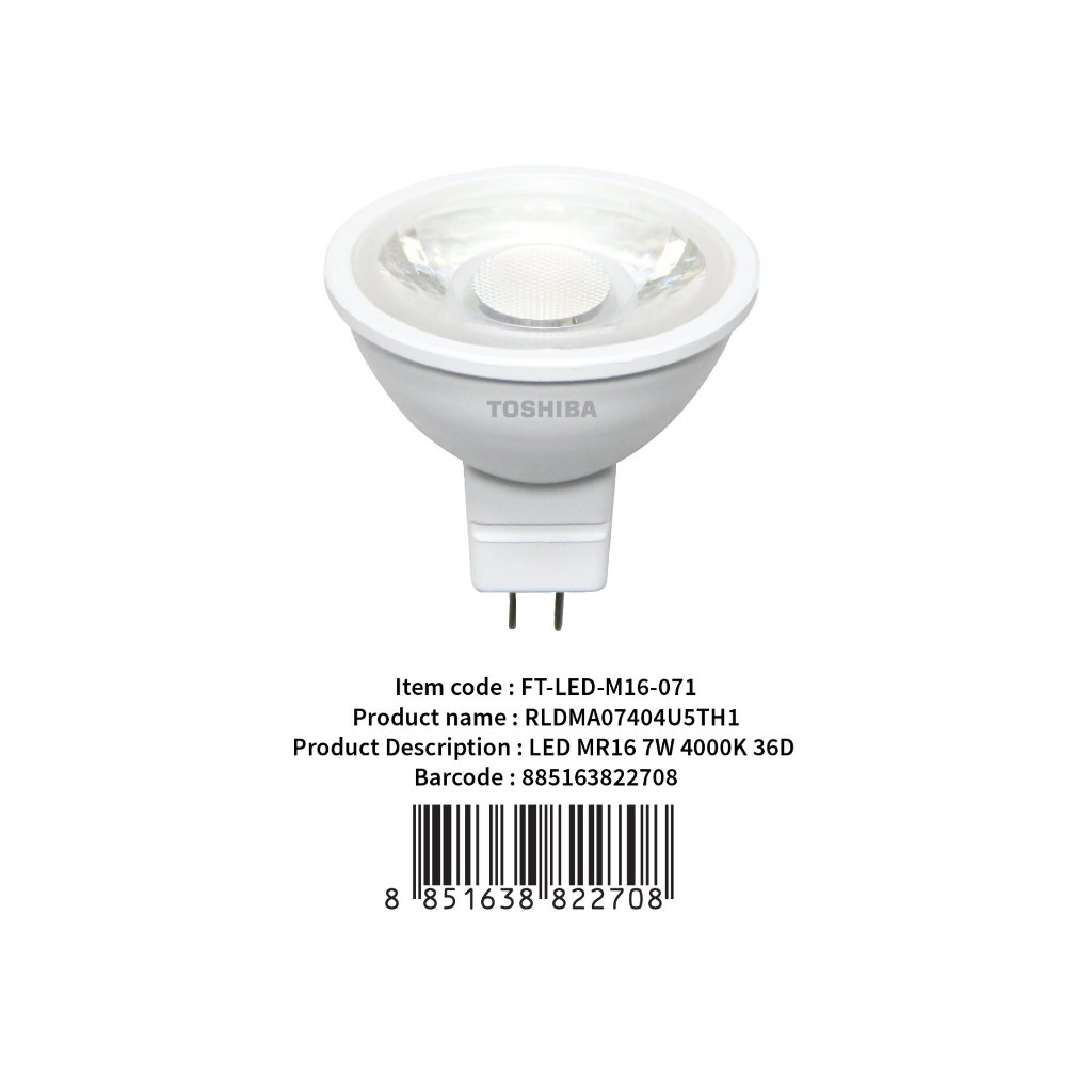 LED MR16 7W 4000K 36D จากแบรนด์ TOSHIBA ช่วยเพิ่มความสว่างเฉพาะจุดให้กับบ้านหรือร้านค้าของคุณได้ ด้วยแสงสีขาวนวล ช่วยสร้างบรรยากาศผ่อนคลาย สว่างสดใส กระปรี้กระเปร่า กระจายเป็นวงกว้าง 36 องศา ให้ความสว่างชัดเจน ไม่มีรังสี UV และรังสีอินฟาเรด มีความปลอดภัยกับผิวหนัง และมีอายุการใช้งานเฉลี่ยยาวนานถึง 25,000 ชั่วโมง