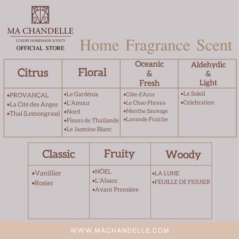 ...เพิ่มความหอมที่เป็นเอกลักษณ์ให้กับทุกพื้นที่ด้วยก้านไม้กระจายกลิ่นหอมจาก Ma Chandelle โดยก้านไม้กระจายกลิ่นหอมขนาดพกพา เหมาะสำหรับเป็นของฝากและของขวัญสำหรับคนพิเศษของคุณ ได้ถูกผลิตขึ้นอย่างพิถีพิถันเพื่อช่วยสร้างบรรยากาศที่เต็มไปด้วยพลังบวก จากกลิ่นหอมอันเย้ายวนใจ และเพิ่มชีวิตชีวาให้กับทุกพื้นที่ในบ้านคุณ กลิ่นทุกๆกลิ่นของ Ma Chandelle ถูกพัฒนามาอย่างประณีตโดยใช้น้ำหอมจากประเทศฝรั่งเศส เลือกใช้เฉพาะส่วนผสมชั้นดีจากทั่วทุกมุมโลก เพื่อเสริมสร้างความสุข ปลอบประโลมจิตใจ ร่างกายและจิตวิญญาณ