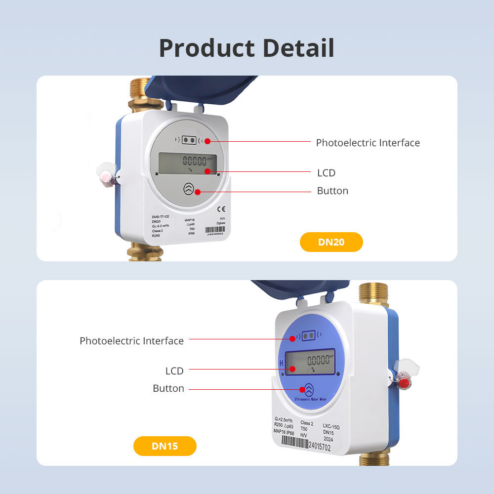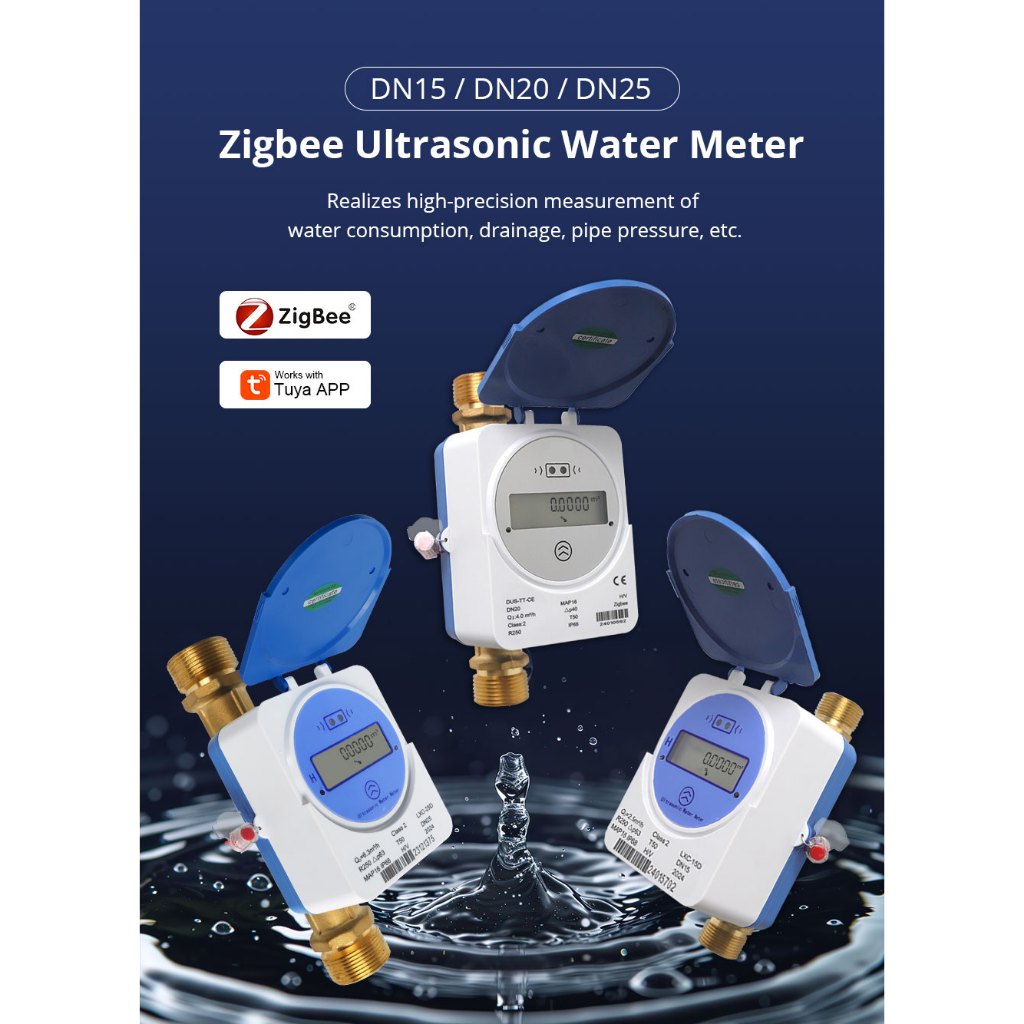 Tuya Zigbee Smart Ultrasonic Water Meter Pulse Output IP68 LCD Digital Display Water Flow วันที่การใช้น้ําสมาร์ทระบบ,Leak Threstod Alarms,APP Control