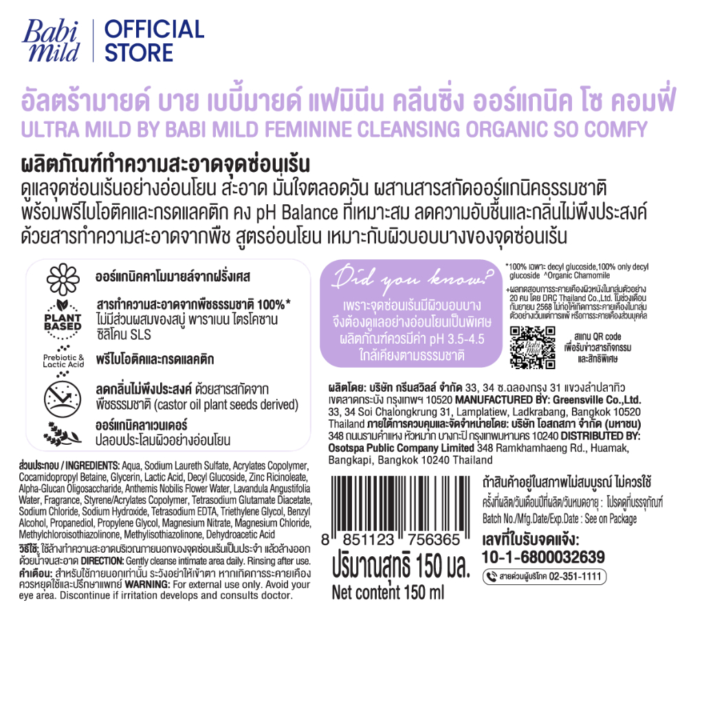 Gently cleanse intimate area. Combine with plant-based and natural organic extracts, along with prebiotics and lactic acid. Reduces dampness and odors. Dermatologically tested. Suitable for daily use.