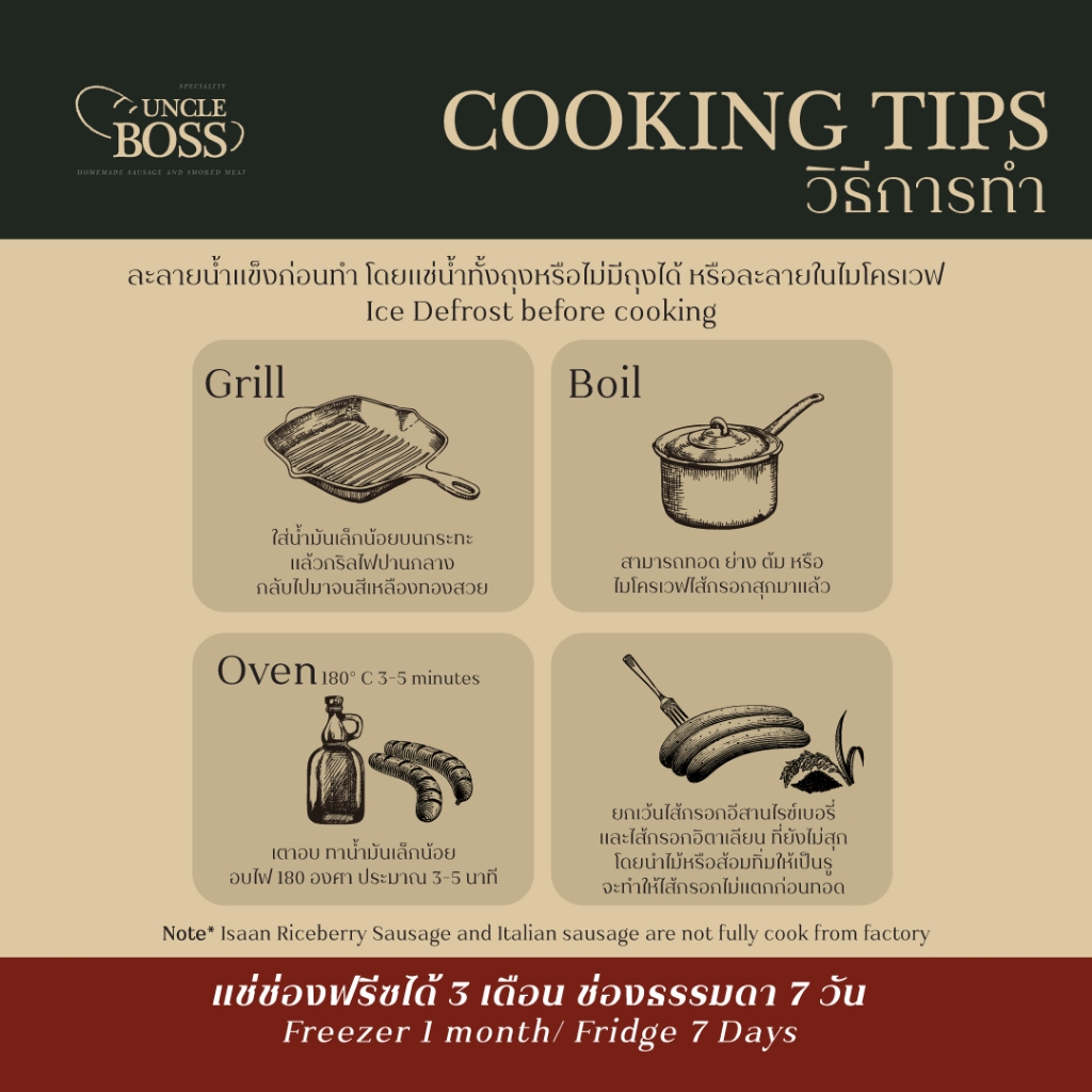 🍳Boil สามารถทอด ย่าง ต้ม หรือไมโครเวฟ ไส้กรอกสุกมาแล้ว