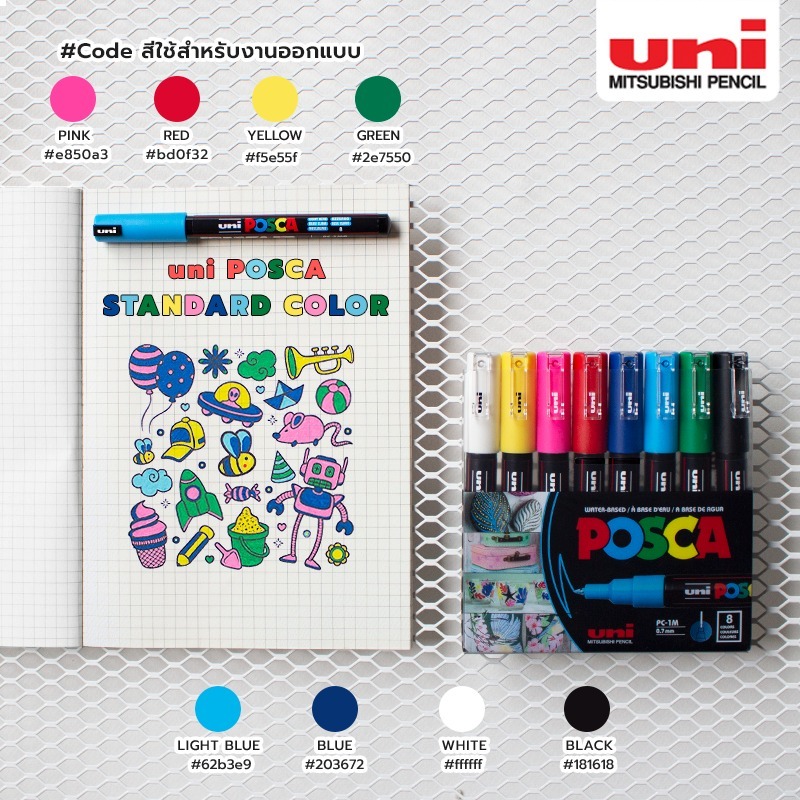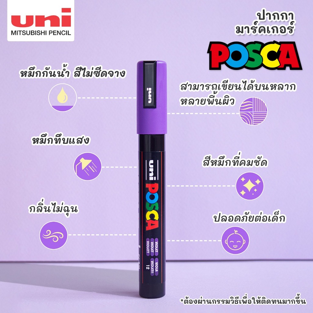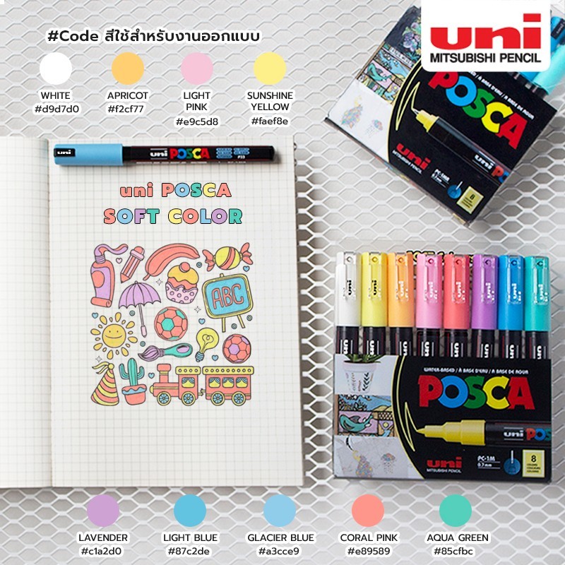 🌈 ปากกา POSCA สามารถเขียนได้ในหลากหลายพื้นผิว เช่น กระดาษ โลหะ แก้ว พลาสติก ไม้ ผ้า และหิน