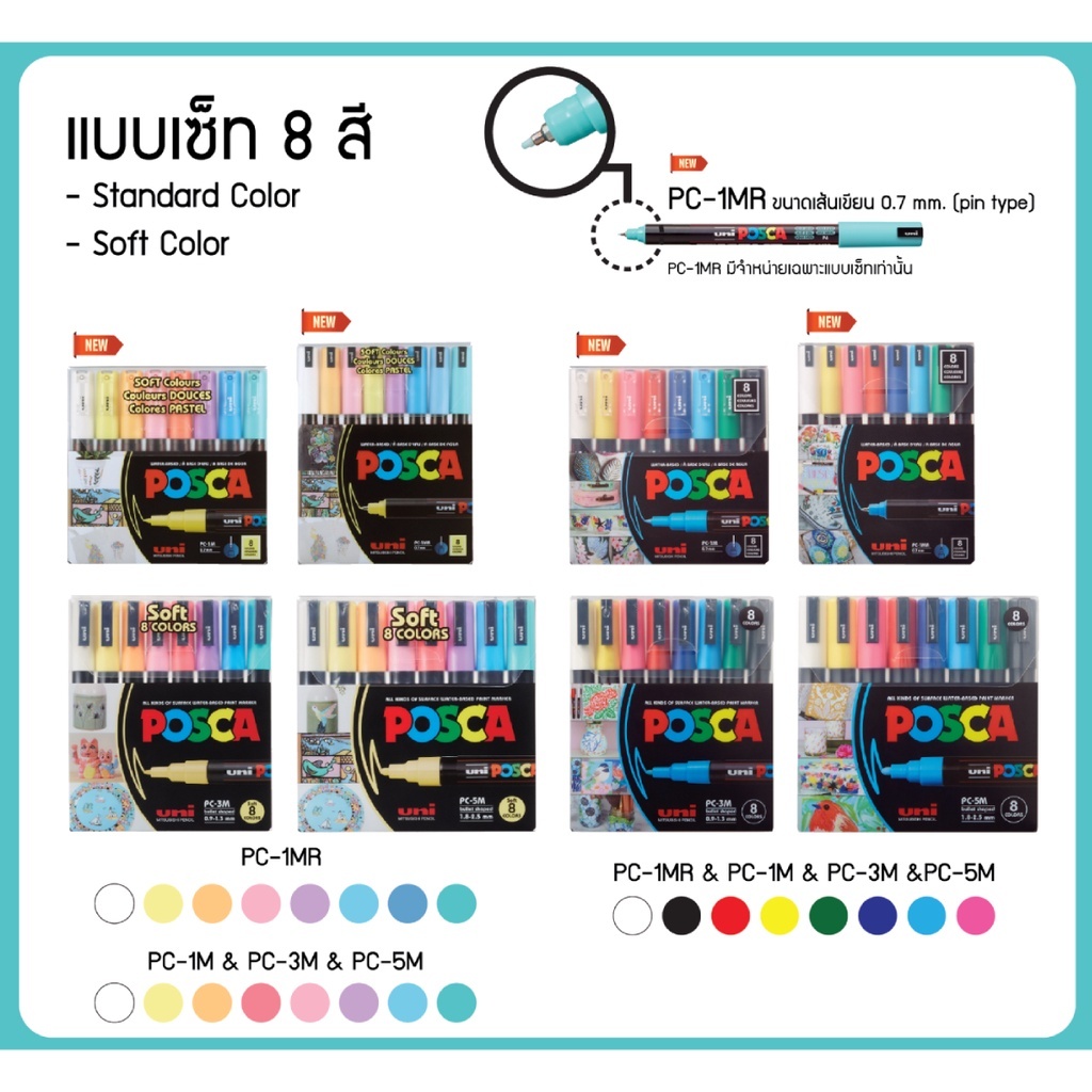 🌈 ปากกายูนิมาร์คเกอร์ UNI รุ่น POSCA แบบชุด 8 และ 16 สี