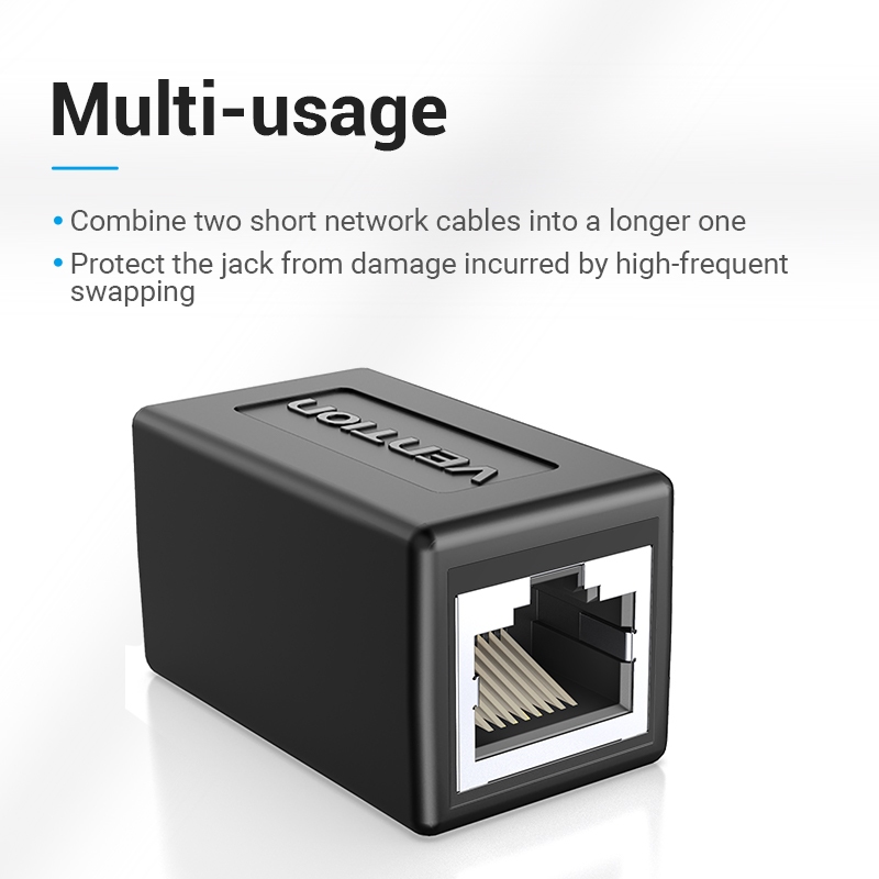 Vention Cat6 RJ45 แจ็คเครือข่ายหญิงถึงหญิงเหมาะอย่างยิ่งสำหรับการเชื่อมต่อสายเคเบิลเครือข่ายสองสายเพื่อสร้างสายเคเบิลเครือข่ายที่ยาวขึ้นหนึ่งสาย