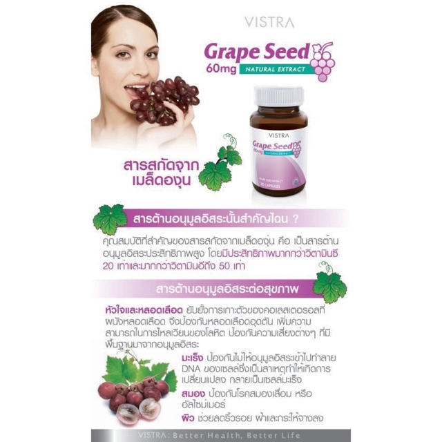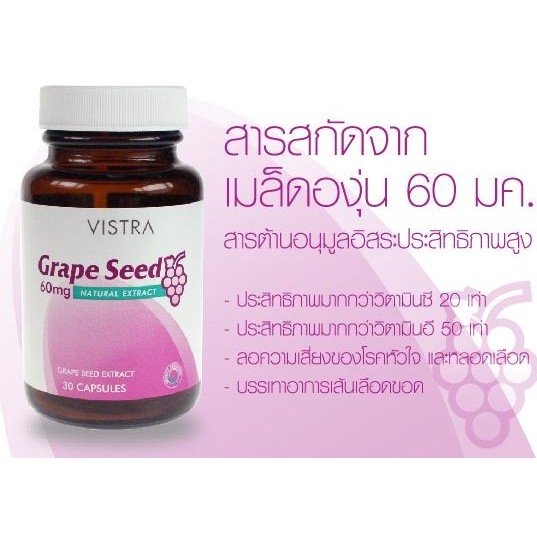 - 1 แคปซูลให้สารสกัดจากเมล็ดองุ่น 60 มก.